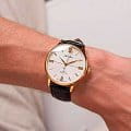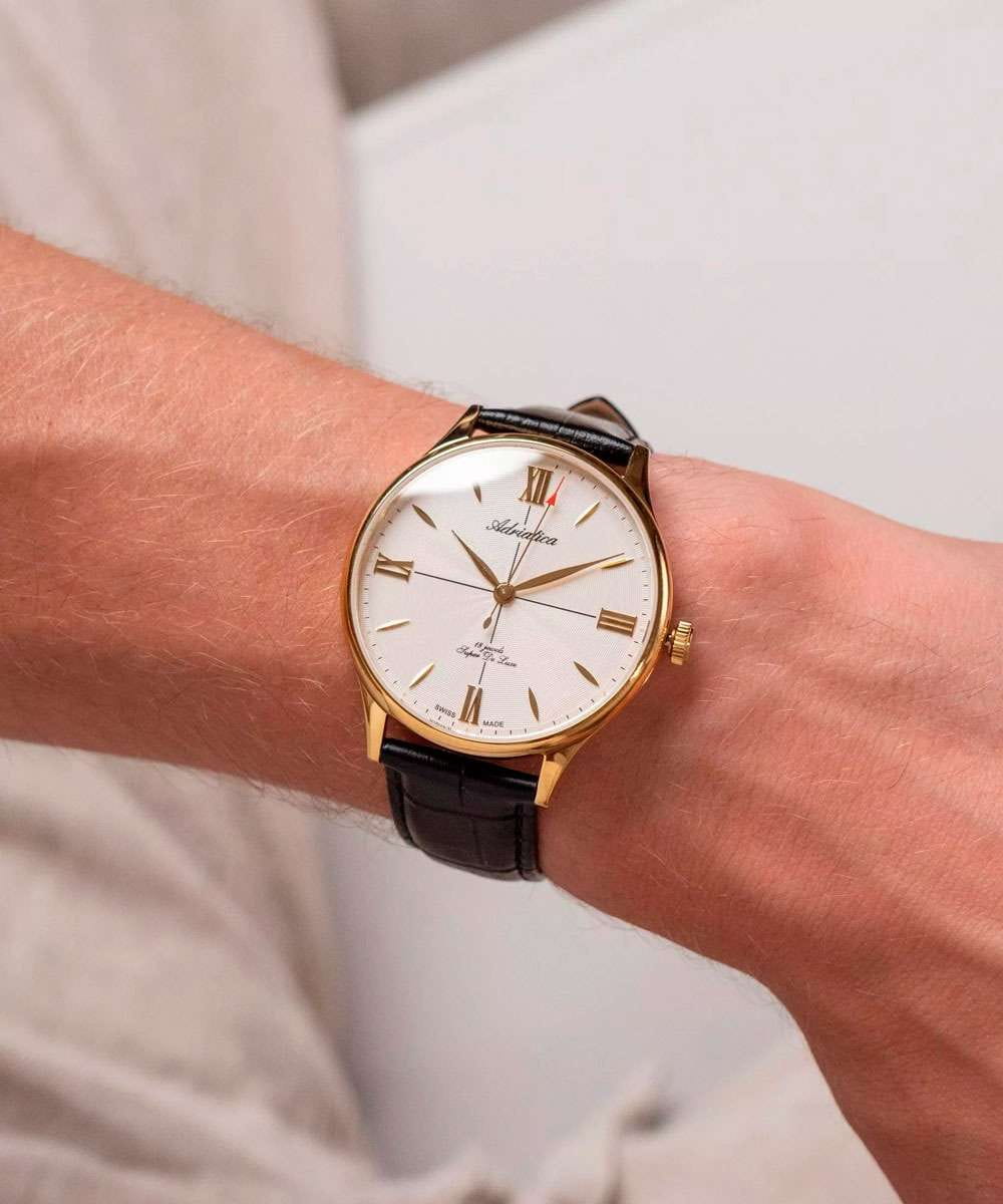 Часы Adriatica A1230.1263MXL представляют собой изысканное сочетание традиционного швейцарского мастерства и современного дизайна. Эти механические часы с калибром Sellita SW210 поражают точностью и надежностью, обеспечивая 42-часовой запас хода. Корпус из нержавеющей стали с PVDPVDУльтратонкое покрытие наносится в технике вакуумного напыления, сочетает в себе нитрид титана особой прочности со слоем золота или оксида хрома. Несёт в себе декоративную или защитную функцию. покрытием придает модели элегантный вид и защищает от внешних воздействий. Циферблат серебристого цвета с гильошированием завораживает своей текстурой, а римские цифры и штрихи добавляют классический акцент. Прозрачная задняя крышка позволяет любоваться сложной работой механизма. Кожаный ремешок с классической застежкой обеспечивает комфортное ношение и подчеркивает стильный внешний вид. Сапфировое стеклоСапфировое стеклоПрочный и надёжный материал из кристалла сапфира синтетического происхождения, характеризующийся особой твёрдостью и устойчивостью к царапинам и повреждениям. надежно защищает циферблат, а водозащита 30 WR делает эти часы практичным выбором для повседневного использования. Adriatica A1230.1263MXL — это не просто аксессуар, а отражение утонченного вкуса и внимания к деталям, которое станет достойным дополнением к любому образу.