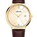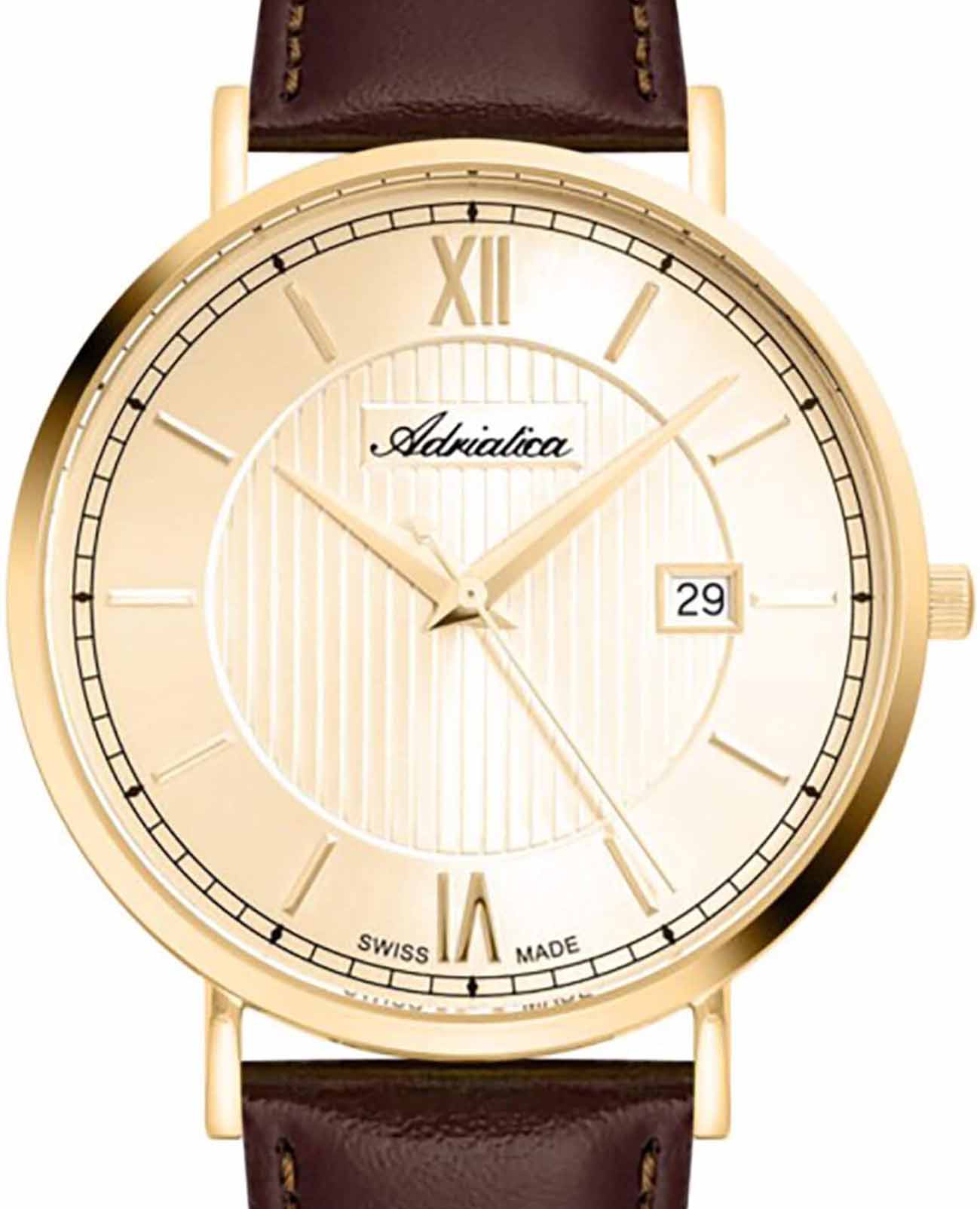 Мужские швейцарские часы Adriatica Pairs A1294.1B61Q имеют кварцевый механизм с высокой точностью. Корпус часов изготовлен из нержавеющей стали золотистым PVDPVDУльтратонкое покрытие наносится в технике вакуумного напыления, сочетает в себе нитрид титана особой прочности со слоем золота или оксида хрома. Несёт в себе декоративную или защитную функцию. покрытием. Сапфировое стеклоСапфировое стеклоПрочный и надёжный материал из кристалла сапфира синтетического происхождения, характеризующийся особой твёрдостью и устойчивостью к царапинам и повреждениям. устойчивое к появлению царапин, обладающее высокой прозрачностью, защищает золотистый циферблат, на котором расположилось окошко даты в районе 3 часа, а метки этих часов в виде штрихов и римских цифр VI и XII. Кожаный коричневый ремешок со стандартной застежкой обеспечивает комфортное ношение и подчеркивает стильный внешний вид. Надежный кварцевый механизм с калибром RONDA 715 гарантирует точность времени, а водозащита WR 30 (3 ATM) делает эти часы практичным выбором для повседневного использования.