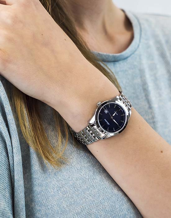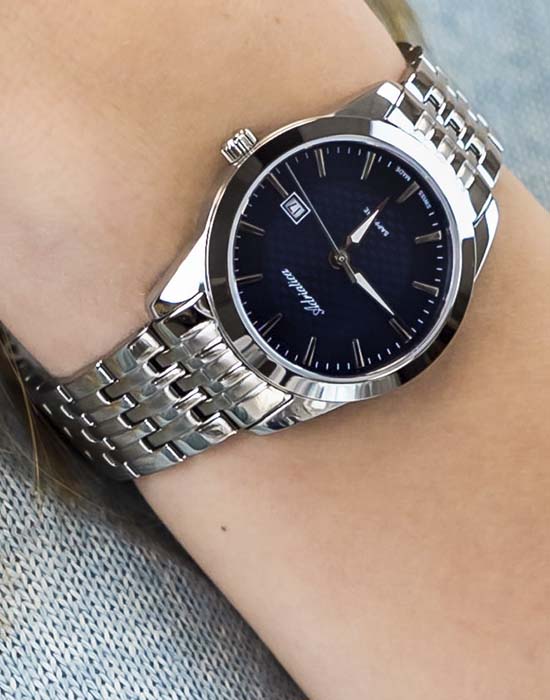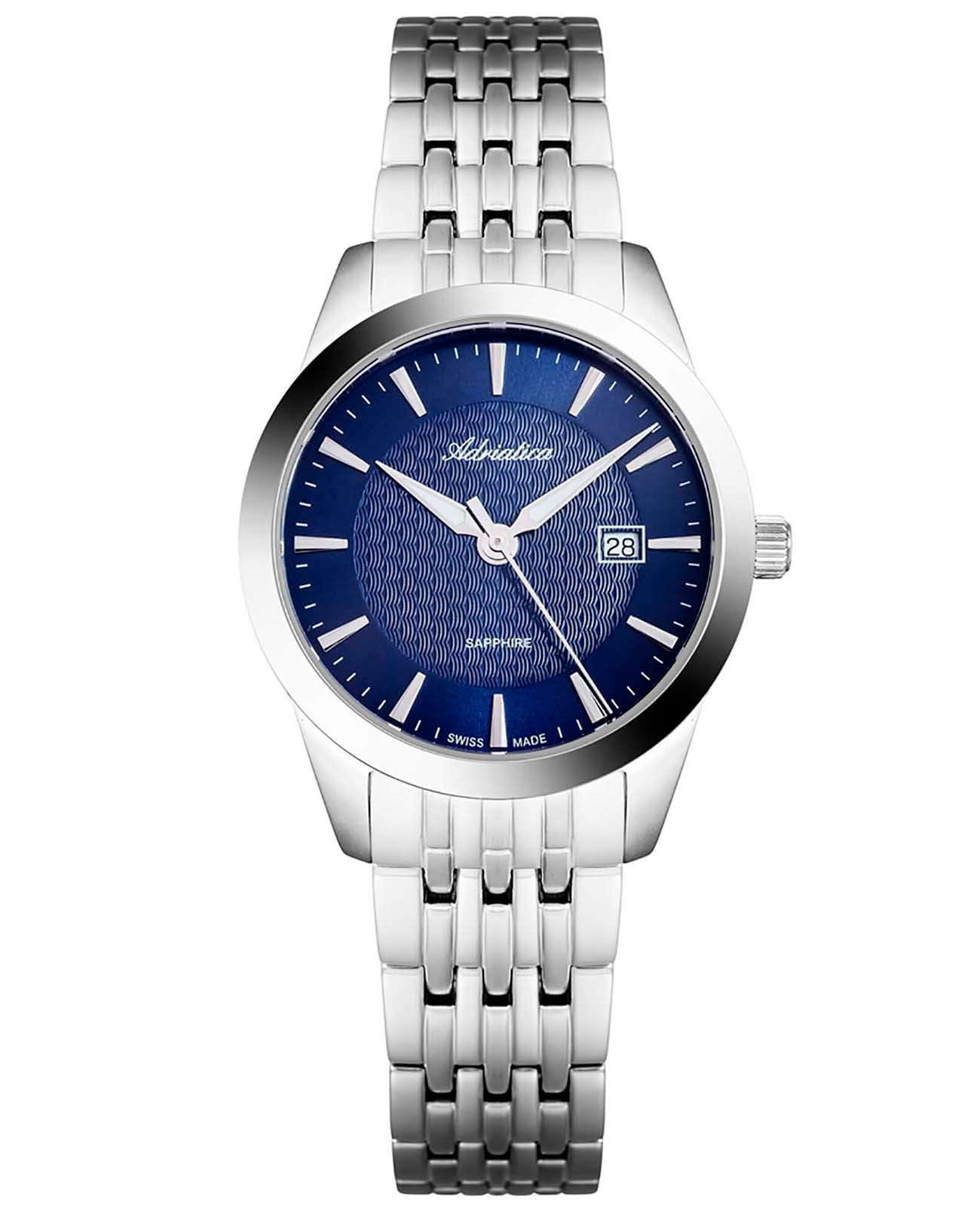Часы Adriatica A3188.5115Q представляют собой сочетание швейцарской точности и изысканного дизайна. Эти часы из коллекции Premier созданы для тех, кто ценит утонченность и надежность. Корпус диаметром 32 мм и толщиной 8 мм выполнен из нержавеющей стали, что придает изделию элегантность и долговечность. Сердцем часов является кварцевый механизм ETA F04, обеспечивающий высокую точность хода. Сапфировое стеклоСапфировое стеклоПрочный и надёжный материал из кристалла сапфира синтетического происхождения, характеризующийся особой твёрдостью и устойчивостью к царапинам и повреждениям. защищает изящный синий циферблат, а люминесцентное покрытиеЛюминесцентное покрытиеПозволяет считывать показания времени в темноте. Производители наносят на стрелки, часовые индексы, безель или поверхность циферблата светонакопительный состав, дающий холодное свечение. на стрелках облегчает чтение времени в условиях низкой освещенности. Часы обладают водозащитой до 5 ATM, что делает их устойчивыми к случайным воздействиям воды. Стальной браслет, выполненный из нержавеющей стали, отличается комфортом и надежностью, а раскладная застёжкаРаскладная застёжкаТакой тип застёжки используется только на браслетах из металла. Она никогда не раскрывается полностью, происходит разделение на 2 и более частей. Раскладывающая застёжка снизит вероятность потери часов к минимуму. обеспечивает удобство ношения. Часы оснащены функцией отображения даты в окошке в положении 3 часа, что добавляет практичности в повседневной жизни.