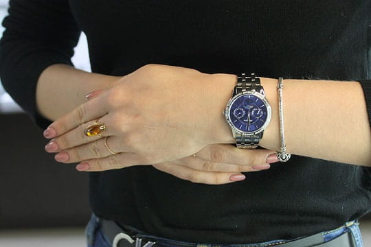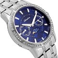 Женские часы Adriatica Moonphase A3601.5115QFZ имеют кварцевый механизм с высокой точностью. Сапфировое стеклоСапфировое стеклоПрочный и надёжный материал из кристалла сапфира синтетического происхождения, характеризующийся особой твёрдостью и устойчивостью к царапинам и повреждениям. устойчивое к появлению царапин, обладающее высокой прозрачностью, защищает изящный синий циферблат. Корпус часов изготовлен из нержавеющей стали, на безелеБезельВнешний ободок, закрепляющий стекло. В спортивных часах так называется поворотное кольцо с делениями на циферблате, выполняет роль таймера – замеряет отрезки времени на шкале. Неподвижный безель – элемент декора. Однонаправленно вращающийся безель на дайверских часах позволяет фиксировать моменты погружения и выныривания на поверхность. расположились фианиты, что придает часам утонченный и стильный вид.  Браслет из нержавеющей стали с раскладной застёжкойРаскладная застёжкаТакой тип застёжки используется только на браслетах из металла. Она никогда не раскрывается полностью, происходит разделение на 2 и более частей. Раскладывающая застёжка снизит вероятность потери часов к минимуму., гармонично дополняет общий дизайн и обеспечивает комфортное ношение на запястье. Надежный кварцевый механизм с калибром RONDA 706 гарантирует точность времени, а водозащита 50 метров, что позволит защитить корпус от случайных брызг или капель дождя. Часы оснащены тремя дополнительными циферблатами с функциями отображения числа месяца, дня недели и фазы Луны, что придает им неповторимый характер.