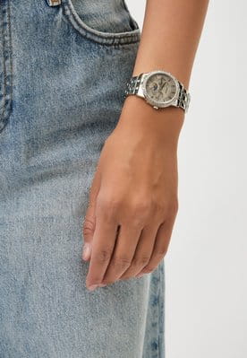 Женские часы Adriatica Moonphase A3601.5117QFZ имеют кварцевый механизм с высокой точностью. Сапфировое стеклоСапфировое стеклоПрочный и надёжный материал из кристалла сапфира синтетического происхождения, характеризующийся особой твёрдостью и устойчивостью к царапинам и повреждениям. устойчивое к появлению царапин, обладающее высокой прозрачностью, защищает изящный серебристый циферблат. Корпус часов изготовлен из нержавеющей стали, на безелеБезельВнешний ободок, закрепляющий стекло. В спортивных часах так называется поворотное кольцо с делениями на циферблате, выполняет роль таймера – замеряет отрезки времени на шкале. Неподвижный безель – элемент декора. Однонаправленно вращающийся безель на дайверских часах позволяет фиксировать моменты погружения и выныривания на поверхность. расположились фианиты, что придает часам утонченный и стильный вид. Браслет из нержавеющей стали с раскладной застёжкойРаскладная застёжкаТакой тип застёжки используется только на браслетах из металла. Она никогда не раскрывается полностью, происходит разделение на 2 и более частей. Раскладывающая застёжка снизит вероятность потери часов к минимуму., гармонично дополняет общий дизайн и обеспечивает комфортное ношение на запястье. Надежный кварцевый механизм с калибром RONDA 706 гарантирует точность времени, а водозащита 50 метров, что позволит защитить корпус от случайных брызг или капель дождя. Часы оснащены тремя дополнительными циферблатами с функциями отображения числа месяца, дня недели и фазы Луны, что придает им неповторимый характер.
