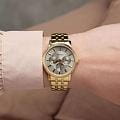 Женские часы Adriatica A3808.1117QF воплощают в себе утонченность и надежность швейцарского часового искусства. Эти часы идеально подойдут для тех, кто ценит стиль и качество в одном изделии. Серебристый циферблат защищен минеральным стекломМинеральное стеклоМинеральное стекло представляет собой искусственно выращенный минерал кварца. Такое стекло отличается особой устойчивостью к повреждениям и царапинам. Уступает по некоторым качествам сапфировому стеклу. и заключен в корпус, выполненный из нержавеющей стали с PVDPVDУльтратонкое покрытие наносится в технике вакуумного напыления, сочетает в себе нитрид титана особой прочности со слоем золота или оксида хрома. Несёт в себе декоративную или защитную функцию. покрытием золотого золота, диаметром 39 мм, которое придает дополнительную прочность и элегантный вид. Часы оснащены кварцевым механизмом, обеспечивающим высокую точность и надежность. Водозащита 50WR делает их устойчивыми к воздействию воды, что позволяет не беспокоиться о случайных брызгах. Стальной браслет с PVDPVDУльтратонкое покрытие наносится в технике вакуумного напыления, сочетает в себе нитрид титана особой прочности со слоем золота или оксида хрома. Несёт в себе декоративную или защитную функцию. покрытием с раскладной застёжкойРаскладная застёжкаТакой тип застёжки используется только на браслетах из металла. Она никогда не раскрывается полностью, происходит разделение на 2 и более частей. Раскладывающая застёжка снизит вероятность потери часов к минимуму. подчеркивает современный стиль и обеспечивает комфортное ношение. День недели и число отображается на отдельных циферблатах. Индикатор фазы Луны.
