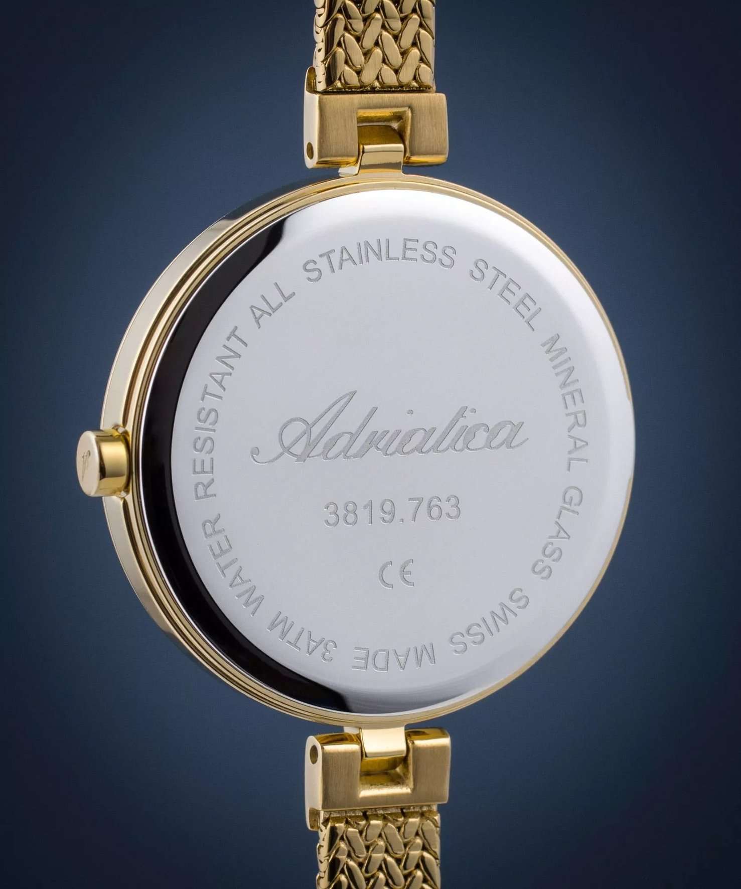 Изысканные женские часы Adriatica A3819.1147Q, произведенные в Швейцарии. Эти часы идеально подойдут для женщин, ценящих элегантность и стиль. Часы оснащены надежным кварцевым механизмом Ronda 763, обеспечивающим точность и долговечность. Корпус диаметром 34 мм и толщиной 7 мм выполнен из стали с PVDPVDУльтратонкое покрытие наносится в технике вакуумного напыления, сочетает в себе нитрид титана особой прочности со слоем золота или оксида хрома. Несёт в себе декоративную или защитную функцию. покрытием, что придает часам современный и утонченный вид. Серый циферблат, украшенный кристаллами, придает дополнительное сияние и изысканность. Минеральное стеклоМинеральное стеклоМинеральное стекло представляет собой искусственно выращенный минерал кварца. Такое стекло отличается особой устойчивостью к повреждениям и царапинам. Уступает по некоторым качествам сапфировому стеклу. защищает циферблат от повреждений, а водозащита уровня 30WR позволяет использовать часы в условиях легкой влажности. Стальной браслет с PVDPVDУльтратонкое покрытие наносится в технике вакуумного напыления, сочетает в себе нитрид титана особой прочности со слоем золота или оксида хрома. Несёт в себе декоративную или защитную функцию. покрытием золотистого цвета и раскладным замкомРаскладной замокДанный вариант застежки используется только на часах с металлическим браслетом. Отличительная особенность такого крепления в том, что длина браслета становится универсальной и вы можете самостоятельно отрегулировать нужный вам размер – застежка просто двигается по браслету часов. обеспечивает комфортное ношение и надежную фиксацию на запястье.