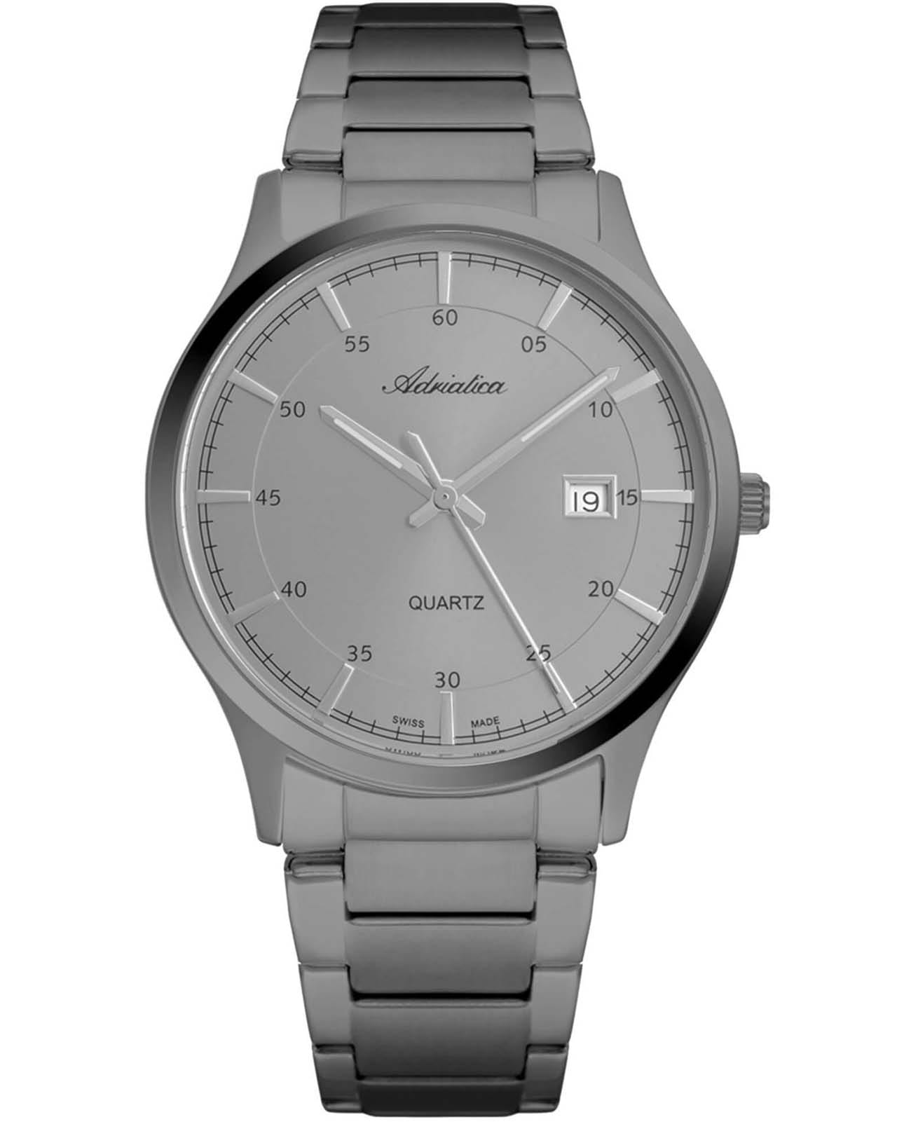 Мужские швейцарские наручные часы Adriatica Premiere A8302.5117Q, кварцевый механизм с высокой точностью. Минеральное стеклоМинеральное стеклоМинеральное стекло представляет собой искусственно выращенный минерал кварца. Такое стекло отличается особой устойчивостью к повреждениям и царапинам. Уступает по некоторым качествам сапфировому стеклу. обеспечивающее надежную защиту темно-серого циферблата, защищает серебристый циферблат, на котором расположилось окошко даты в районе 3 часа, а также метки в виде штрихов и расписанными минутами. Корпус часов изготовлен из стали с серым PVD-покрытиемPVDУльтратонкое покрытие наносится в технике вакуумного напыления, сочетает в себе нитрид титана особой прочности со слоем золота или оксида хрома. Несёт в себе декоративную или защитную функцию.. Стальной браслет на раскладной застёжкеРаскладная застёжкаТакой тип застёжки используется только на браслетах из металла. Она никогда не раскрывается полностью, происходит разделение на 2 и более частей. Раскладывающая застёжка снизит вероятность потери часов к минимуму. с серым PVD-покрытиемPVDУльтратонкое покрытие наносится в технике вакуумного напыления, сочетает в себе нитрид титана особой прочности со слоем золота или оксида хрома. Несёт в себе декоративную или защитную функцию.. Надежный кварцевый механизм с калибром ETA F06 гарантирует точность времени, а водозащита 50 метров, позволит плавать, что позволит защитить корпус от случайных брызг или капель дождя.