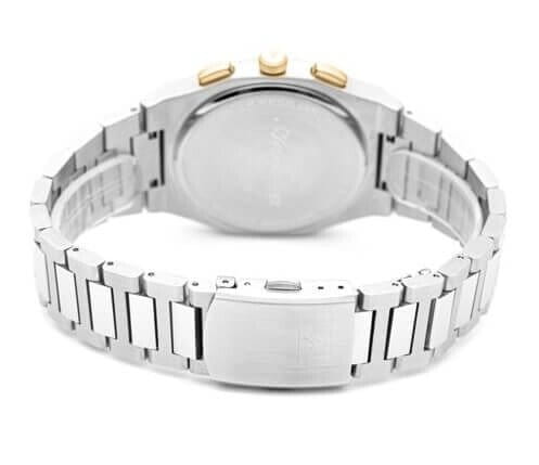 Мужские швейцарские часы-хронографХронографФункция позволяет измерять отрезки времени с особой точностью: часы, минуты, секунды. Верным признаком хронографа является наличие на циферблате 3 дополнительных окошек-счётчиков. с секундомеромСекундомерСекундоме́р — прибор, способный измерять интервалы времени с точностью до долей секунды. Adriatica Premiere A8326.2113CH воплощают в себе элегантность и функциональность, идеально подходящие для современных мужчин, ценящих швейцарское качество. Их белый циферблат защищенный сапфировым стекломСапфировое стеклоПрочный и надёжный материал из кристалла сапфира синтетического происхождения, характеризующийся особой твёрдостью и устойчивостью к царапинам и повреждениям., заключен в корпус из нержавеющей стали диаметром 40 мм и толщиной 10 мм, а на безельБезельВнешний ободок, закрепляющий стекло. В спортивных часах так называется поворотное кольцо с делениями на циферблате, выполняет роль таймера – замеряет отрезки времени на шкале. Неподвижный безель – элемент декора. Однонаправленно вращающийся безель на дайверских часах позволяет фиксировать моменты погружения и выныривания на поверхность. нанесено PVDPVDУльтратонкое покрытие наносится в технике вакуумного напыления, сочетает в себе нитрид титана особой прочности со слоем золота или оксида хрома. Несёт в себе декоративную или защитную функцию. покрытие. Надежный кварцевый механизм с калибром Ronda 5040.B обеспечивает высокую точность, а водозащита 5 ATM делает часы устойчивыми к воздействию воды. Стальной браслет с раскладной застёжкойРаскладная застёжкаТакой тип застёжки используется только на браслетах из металла. Она никогда не раскрывается полностью, происходит разделение на 2 и более частей. Раскладывающая застёжка снизит вероятность потери часов к минимуму. обеспечивает комфортное и надежное ношение. Фактурный циферблат с метками в виде штрихов дополнен рисунком в клетку, а окошко даты находится в положении 12 часов, что добавляет практичности в повседневной жизни. Люминесцентное покрытиеЛюминесцентное покрытиеПозволяет считывать показания времени в темноте. Производители наносят на стрелки, часовые индексы, безель или поверхность циферблата светонакопительный состав, дающий холодное свечение. на стрелках и метках обеспечивает отличную видимость в темноте.
