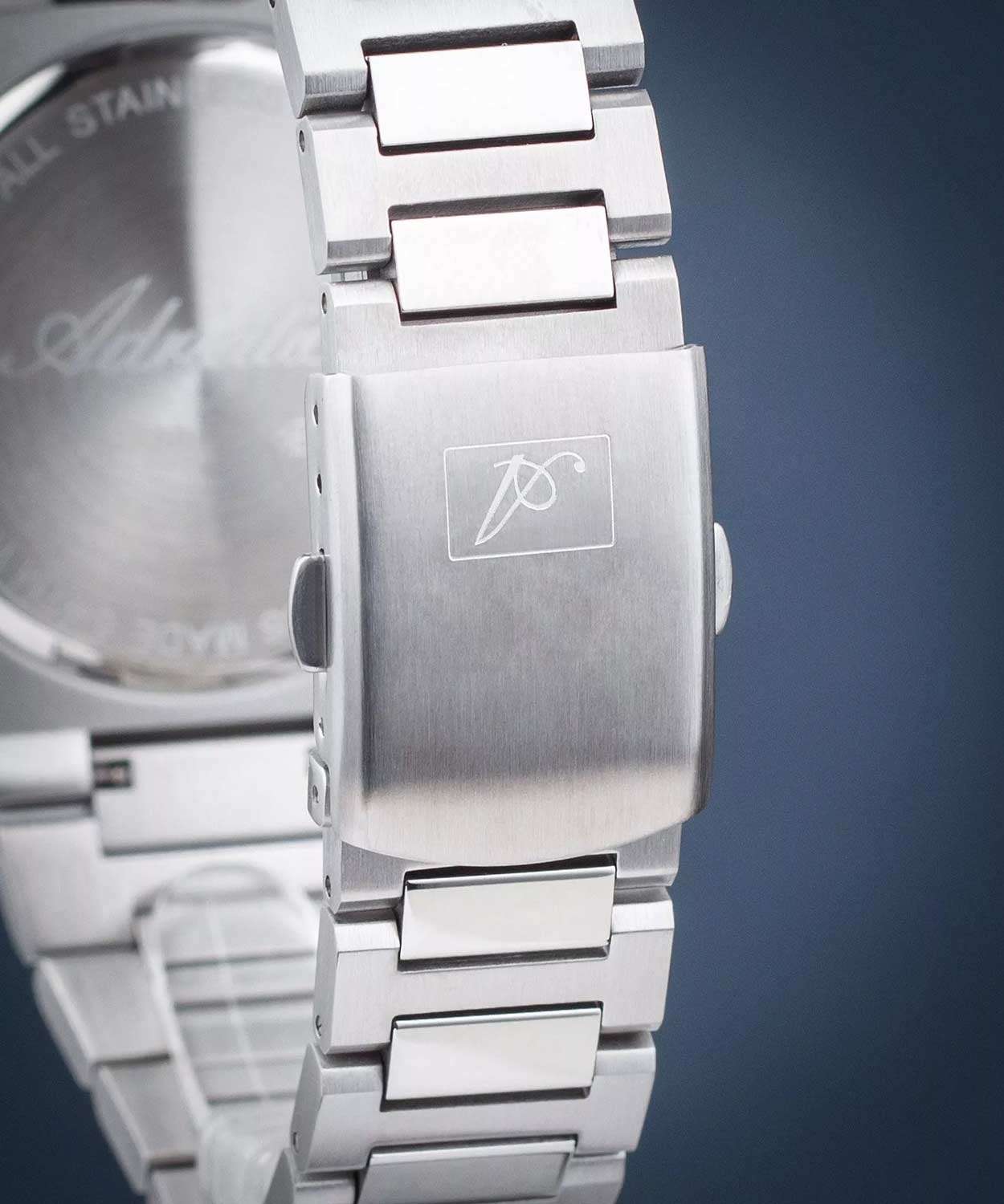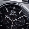 Мужские швейцарские часы-хронографХронографФункция позволяет измерять отрезки времени с особой точностью: часы, минуты, секунды. Верным признаком хронографа является наличие на циферблате 3 дополнительных окошек-счётчиков. с секундомеромСекундомерСекундоме́р — прибор, способный измерять интервалы времени с точностью до долей секунды. Adriatica Premiere A8326.5114CH воплощают в себе элегантность и функциональность, идеально подходящие для современных мужчин, ценящих швейцарское качество. Их черный циферблат защищенный сапфировым стекломСапфировое стеклоПрочный и надёжный материал из кристалла сапфира синтетического происхождения, характеризующийся особой твёрдостью и устойчивостью к царапинам и повреждениям., заключен в корпус из нержавеющей стали диаметром 40 мм и толщиной 10 мм. Надежный кварцевый механизм с калибром Ronda 5040.B обеспечивает высокую точность, а водозащита 5 ATM делает часы устойчивыми к воздействию воды. Стальной браслет с раскладной застёжкойРаскладная застёжкаТакой тип застёжки используется только на браслетах из металла. Она никогда не раскрывается полностью, происходит разделение на 2 и более частей. Раскладывающая застёжка снизит вероятность потери часов к минимуму. обеспечивает комфортное и надежное ношение. Фактурный циферблат с метками в виде штрихов дополнен рисунком в клетку, а окошко даты находится в положении 12 часов, что добавляет практичности в повседневной жизни. Люминесцентное покрытиеЛюминесцентное покрытиеПозволяет считывать показания времени в темноте. Производители наносят на стрелки, часовые индексы, безель или поверхность циферблата светонакопительный состав, дающий холодное свечение. на стрелках и метках обеспечивает отличную видимость в темноте.