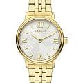 Amalys AMW-162 — женская модель с утончённым классическим дизайном, в которой сочетаются элегантность и практичность. Круглый корпус диаметром 28 мм выполнен из нержавеющей стали с PVDPVDУльтратонкое покрытие наносится в технике вакуумного напыления, сочетает в себе нитрид титана особой прочности со слоем золота или оксида хрома. Несёт в себе декоративную или защитную функцию.-покрытием тёплого оттенка, гармонирующим с браслетом шириной 14 мм в том же исполнении. Защитную функцию выполняет сапфировое стеклоСапфировое стеклоПрочный и надёжный материал из кристалла сапфира синтетического происхождения, характеризующийся особой твёрдостью и устойчивостью к царапинам и повреждениям., стойкое к царапинам и сохраняющее прозрачность. Механизм — кварцевый, обеспечивающий точность и стабильность хода. Браслет с PVDPVDУльтратонкое покрытие наносится в технике вакуумного напыления, сочетает в себе нитрид титана особой прочности со слоем золота или оксида хрома. Несёт в себе декоративную или защитную функцию. снабжён раскладным замкомРаскладной замокДанный вариант застежки используется только на часах с металлическим браслетом. Отличительная особенность такого крепления в том, что длина браслета становится универсальной и вы можете самостоятельно отрегулировать нужный вам размер – застежка просто двигается по браслету часов., который сочетает надёжность фиксации и удобство повседневного использования. Водозащита 5 ATM защищает часы от случайных брызг и дождя. Циферблат с римскими индексами и изящными стрелками подчёркивает классическую эстетику модели, делая её уместной как в повседневных образах, так и в торжественной обстановке.