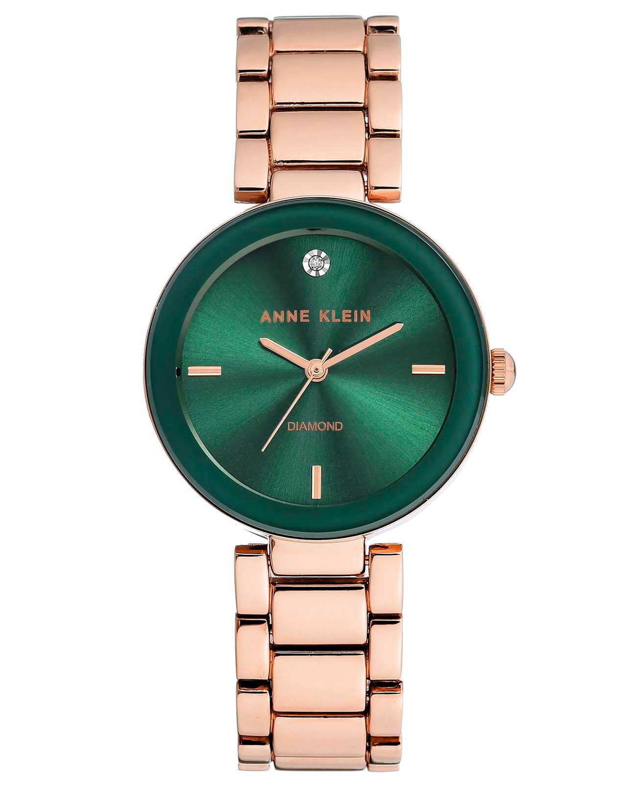 Женские американские наручные часы Anne Klein Diamond 1362GNRG, кварцевый механизм с высокой точностью. Класс водозащиты: 30 метров, позволит защитить корпус от случайных брызг или капель дождя. Корпус часов изготовлен из стали, цвета.
