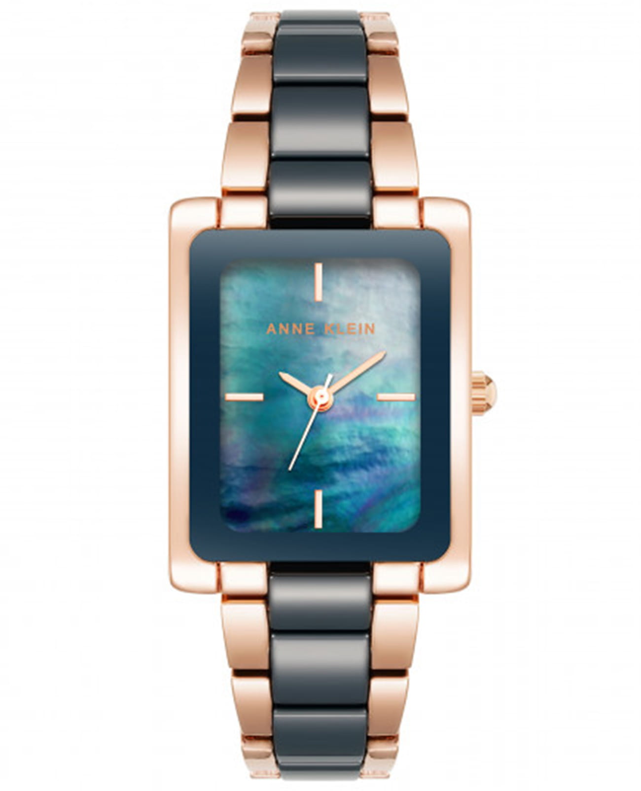 Женские американские наручные часы Anne Klein 3998NVRG, кварцевый механизм с высокой точностью. Класс водозащиты: 30 метров, позволит защитить корпус от случайных брызг или капель дождя. Минеральное стеклоМинеральное стеклоМинеральное стекло представляет собой искусственно выращенный минерал кварца. Такое стекло отличается особой устойчивостью к повреждениям и царапинам. Уступает по некоторым качествам сапфировому стеклу. устойчивое к мелким механическим повреждениям. Корпус часов изготовлен из стали с IP-покрытиемIP-покрытиеМетод ионного напыления. Демонстрирует повышенную устойчивость к истиранию, окислению и химическим веществам. Под воздействием высокого давления и температуры около 1500°C молекулы металла надёжно соединяются с частицами корпуса часов.. Стальной браслет с IP-покрытиемIP-покрытиеМетод ионного напыления. Демонстрирует повышенную устойчивость к истиранию, окислению и химическим веществам. Под воздействием высокого давления и температуры около 1500°C молекулы металла надёжно соединяются с частицами корпуса часов. и керамическими вставками на ювелирной затежке. Керамический безельБезельВнешний ободок, закрепляющий стекло. В спортивных часах так называется поворотное кольцо с делениями на циферблате, выполняет роль таймера – замеряет отрезки времени на шкале. Неподвижный безель – элемент декора. Однонаправленно вращающийся безель на дайверских часах позволяет фиксировать моменты погружения и выныривания на поверхность..