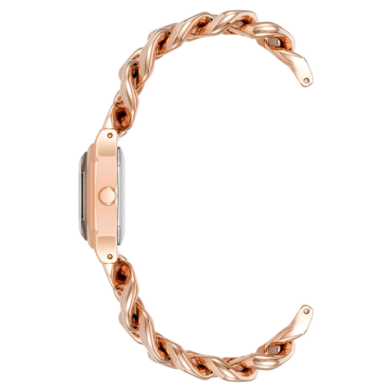 Женские американские часы на браслете Anne Klein Chain Reaction 4002GNRG, кварцевый механизм с высокой точностью. Класс водозащиты: 30 метров, позволит защитить корпус от случайных брызг или капель дождя. Корпус часов и браслет в виде цепи изготовлен из стали с IP-покрытиемIP-покрытиеМетод ионного напыления. Демонстрирует повышенную устойчивость к истиранию, окислению и химическим веществам. Под воздействием высокого давления и температуры около 1500°C молекулы металла надёжно соединяются с частицами корпуса часов. цвета розового золото. Циферблат зеленого цвета с минеральным стекломМинеральное стеклоМинеральное стекло представляет собой искусственно выращенный минерал кварца. Такое стекло отличается особой устойчивостью к повреждениям и царапинам. Уступает по некоторым качествам сапфировому стеклу..