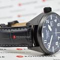 Матовый циферблат с крупными арабскими цифрами, широкими стрелками и контрастной шкалой минут обеспечивает точную и быструю считываемость информации — как и положено настоящим пилотским часам. У отметки «3 часа» — окошко даты. Часовые метки и стрелки покрыты люминесцентным покрытиемЛюминесцентное покрытиеПозволяет считывать показания времени в темноте. Производители наносят на стрелки, часовые индексы, безель или поверхность циферблата светонакопительный состав, дающий холодное свечение. Superluminova, позволяющим легко определять время даже в тёмное время суток.