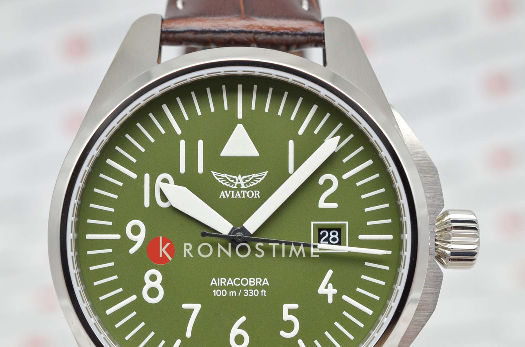 Aviator V.1.38.0.319.4 “Airacobra 43 Type A” — надёжные швейцарские пилотские часы с насыщенным функционалом и строгим авиационным дизайном. Корпус диаметром 42,8 мм выполнен из нержавеющей стали.