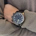 Aviator Airacobra P45 Chrono V.2.25.8.172.4  — швейцарские часы в духе пилотских инструментов, объединяющий точность, удобство и лаконичный дизайн. Диаметр корпуса — 45 мм, выполнен из нержавеющей стали 316L с PVD-покрытиемPVDУльтратонкое покрытие наносится в технике вакуумного напыления, сочетает в себе нитрид титана особой прочности со слоем золота или оксида хрома. Несёт в себе декоративную или защитную функцию., что подчёркивает техническую надёжность в образе часов. Циферблат оформлен в классическом aviator-стиле: крупные арабские цифры, широкие стрелки и чёткое деление минут позволяют считывать время мгновенно. Стрелки и метки покрыты люминесцентным покрытиемЛюминесцентное покрытиеПозволяет считывать показания времени в темноте. Производители наносят на стрелки, часовые индексы, безель или поверхность циферблата светонакопительный состав, дающий холодное свечение. Superluminova для отличной читаемости при слабом освещении. Циферблат защищён стойким сапфировым стекломСапфировое стеклоПрочный и надёжный материал из кристалла сапфира синтетического происхождения, характеризующийся особой твёрдостью и устойчивостью к царапинам и повреждениям. с антибликовым покрытиемАнтибликовое покрытиеСлой оксида металла в 0,13-0,3 микрон, благодаря которому стекло часов не бликует и не отражает свет. Антибликовое покрытие уменьшает отражение света в 10 раз, обеспечивая отличную читаемость показателей циферблата.. У модели присутствуют дата и точный откидной механизм завинчивающейся заводной головки и задней крышки, обеспечивающий надёжную водозащиту до 100 м и защиту от ударов. Внутри установлен швейцарский кварцевый механизм, который обеспечивает функции хронографаХронографФункция позволяет измерять отрезки времени с особой точностью: часы, минуты, секунды. Верным признаком хронографа является наличие на циферблате 3 дополнительных окошек-счётчиков.. Функции добавить (ADD) и разделить (SPLIT). Кожаный ремень со стандартной застежкой обеспечивает удобство и надёжную фиксацию. Эти изысканные часы так же обладают функциями тахиметраТахиметрРазмеченная шкала, располагается на ободке или безеле часов. Тахиметр позволяет рассчитать скорость на определённом участке пути, расстояние измеряется в километрах или милях., секундомераСекундомерСекундоме́р — прибор, способный измерять интервалы времени с точностью до долей секунды. и телеметра. Airacobra — это практичный и стильный инструмент для путешествий и активной повседневности, объединяющий авиационную эстетику, точный механизм и удобство.