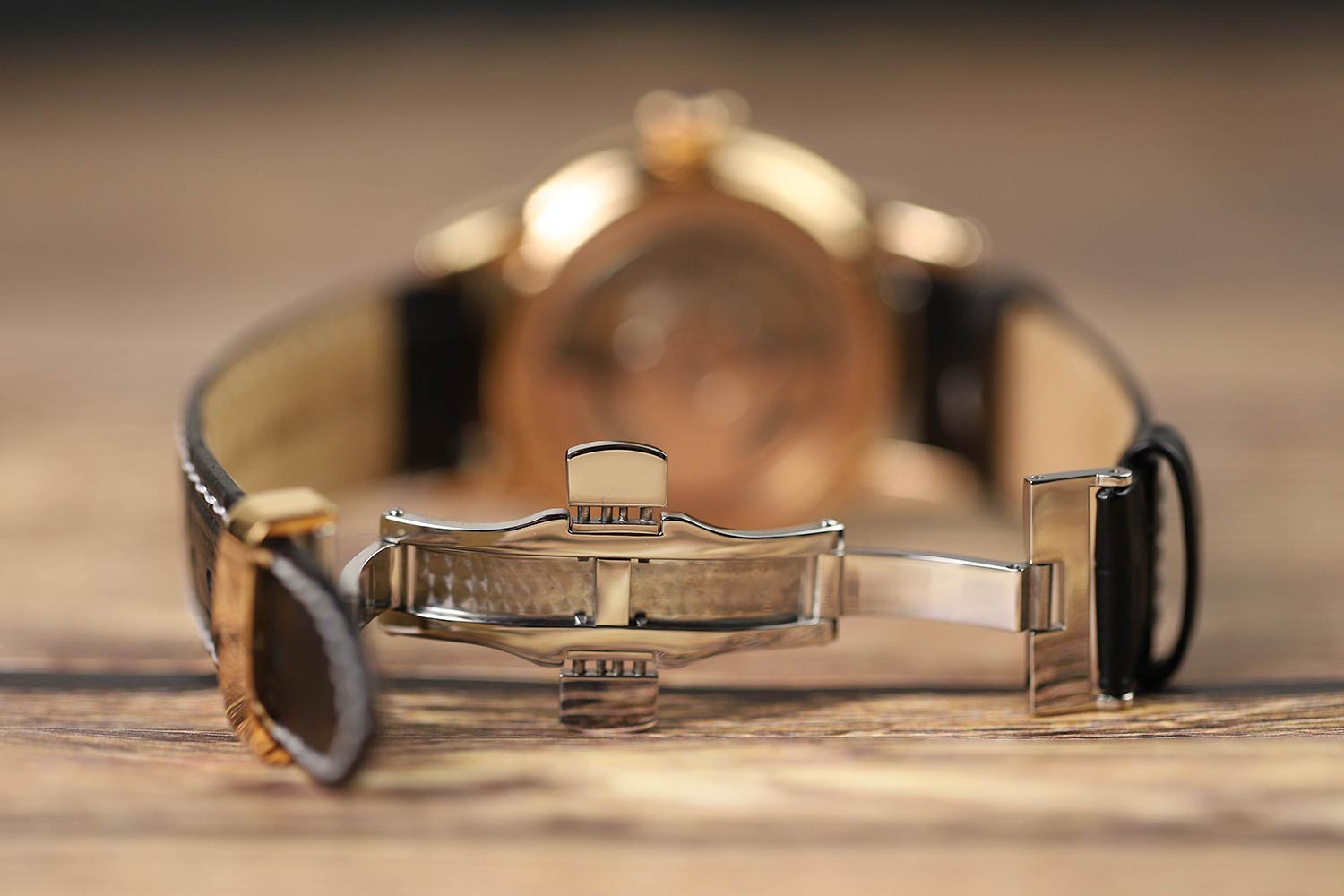 Aviator Douglas Day Date V.3.35.2.275.4 — швейцарские часы в классике авиадизайна, сочетающие безупречную читаемость и высокую надёжность. Лимитированная серия – 950 экземпляров. Корпус диаметром 41,2 мм выполнен из нержавеющей стали 316L с PVD-покрытиемPVDУльтратонкое покрытие наносится в технике вакуумного напыления, сочетает в себе нитрид титана особой прочности со слоем золота или оксида хрома. Несёт в себе декоративную или защитную функцию. цвета розового золота. Накладные метки выполнены в виде римских цифр. Окошко даты находится в положении 6 часов. День недели находится в положении 12 часов. Часовые метки и стрелки покрыты люминесцентным покрытиемЛюминесцентное покрытиеПозволяет считывать показания времени в темноте. Производители наносят на стрелки, часовые индексы, безель или поверхность циферблата светонакопительный состав, дающий холодное свечение. Superluminova, позволяющим легко определять время даже в тёмное время суток. Поверхность защищена прочным сапфировым стекломСапфировое стеклоПрочный и надёжный материал из кристалла сапфира синтетического происхождения, характеризующийся особой твёрдостью и устойчивостью к царапинам и повреждениям. с антибликовым покрытием, устойчивым к царапинам. Сердце модели — швейцарский механизм Sellita SW 240-1, известный своей точностью и долговечностью. Водозащита 100 метров, позволит плавать, нырять и заниматься другими водными видами спорта. Завинчивающаяся головка и задняя крышка обеспечивают уверенную ударопрочностьУдаропрочный корпусМеханизм заключён в корпус, выполненный из современных материалов, устойчивых к ударам, механическим повреждениям и падению с высоты: инновационный пластик, карбон, нержавеющая сталь, титан. и надёжную защиту от влаги и пыли. В механизме 26 камней, запас хода до 41 час. Модель дополнена кожаным ремешком с выразительной текстурой и классическим стилем, закреплённым с помощью застёжке-бабочке с кнопкамиЗастёжка "бабочка"Такой вид застёжки дополняется предохранителями, помогающими избежать случайного раскрытия браслета. Обладают изящным исполнением. — для максимального комфорта и лёгкости в повседневном использовании. Модель вдохновлена американским пассажирским самолетом Douglas DC-3, который является одним из лучших самолетов за всю историю авиации. Aviator — это образец лётной точности, инженерной чёткости и сдержанной роскоши, идеально подходящий для тех, кто ценит функциональность и уверенность в каждом элементе.