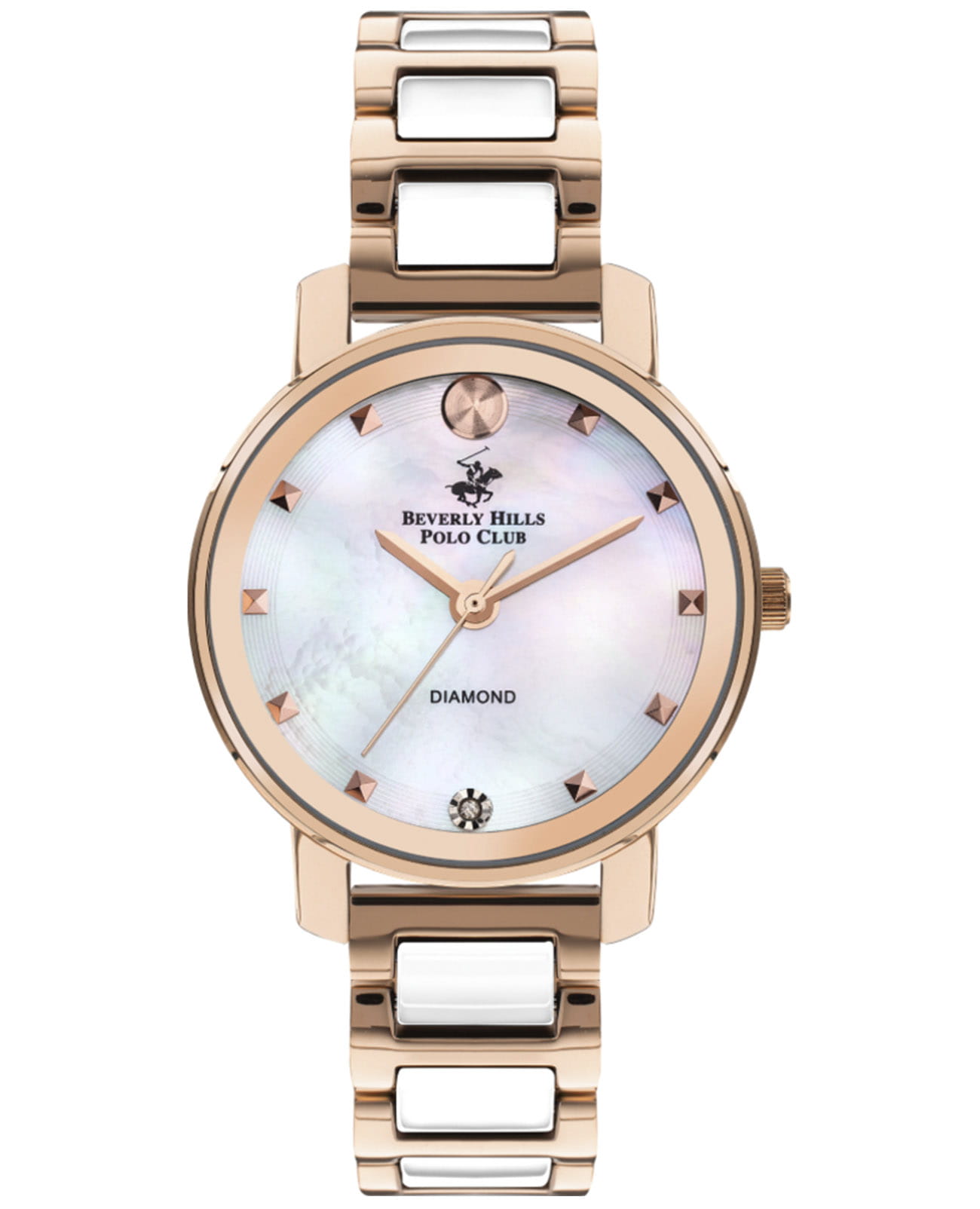 Американские женские часы с минеральным стекломМинеральное стеклоМинеральное стекло представляет собой искусственно выращенный минерал кварца. Такое стекло отличается особой устойчивостью к повреждениям и царапинам. Уступает по некоторым качествам сапфировому стеклу. и кристаллами Beverly Hills Polo Club BP3349X.420, кварцевый механизм с высокой точностью. Класс водозащиты: 30 метров, позволит защитить корпус от случайных брызг или капель дождя. Корпус часов изготовлен из стали с IP-покрытиемIP-покрытиеМетод ионного напыления. Демонстрирует повышенную устойчивость к истиранию, окислению и химическим веществам. Под воздействием высокого давления и температуры около 1500°C молекулы металла надёжно соединяются с частицами корпуса часов.. Стальной браслет на раскладной застёжкеРаскладная застёжкаТакой тип застёжки используется только на браслетах из металла. Она никогда не раскрывается полностью, происходит разделение на 2 и более частей. Раскладывающая застёжка снизит вероятность потери часов к минимуму. с IP-покрытиемIP-покрытиеМетод ионного напыления. Демонстрирует повышенную устойчивость к истиранию, окислению и химическим веществам. Под воздействием высокого давления и температуры около 1500°C молекулы металла надёжно соединяются с частицами корпуса часов. и вставками керамики.