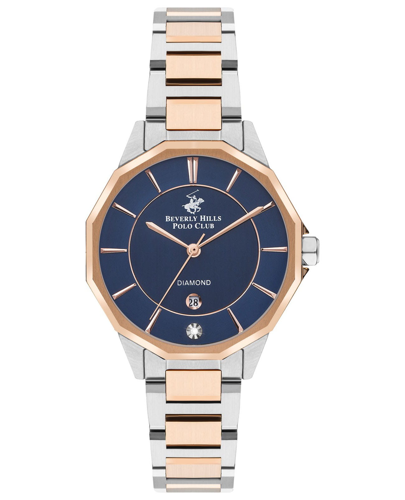 Американские женские часы Beverly Hills Polo Club BP3376X.590 с минеральным стекломМинеральное стеклоМинеральное стекло представляет собой искусственно выращенный минерал кварца. Такое стекло отличается особой устойчивостью к повреждениям и царапинам. Уступает по некоторым качествам сапфировому стеклу., кварцевый механизм с высокой точностью. Корпус и браслет часов изготовлены из нержавеющей стали. НеподвижныйбезельБезельВнешний ободок, закрепляющий стекло. В спортивных часах так называется поворотное кольцо с делениями на циферблате, выполняет роль таймера – замеряет отрезки времени на шкале. Неподвижный безель – элемент декора. Однонаправленно вращающийся безель на дайверских часах позволяет фиксировать моменты погружения и выныривания на поверхность. из нержавеющей стали с IP-покрытиемIP-покрытиеМетод ионного напыления. Демонстрирует повышенную устойчивость к истиранию, окислению и химическим веществам. Под воздействием высокого давления и температуры около 1500°C молекулы металла надёжно соединяются с частицами корпуса часов.. Циферблат украшен бриллиантом. Окошко даты находится в положении 6 часов. Класс водозащиты: 50 метров, позволит защитить корпус от случайных брызг или капель дождя. Браслет из нержавеющей стали с частичным IP-покрытиемIP-покрытиеМетод ионного напыления. Демонстрирует повышенную устойчивость к истиранию, окислению и химическим веществам. Под воздействием высокого давления и температуры около 1500°C молекулы металла надёжно соединяются с частицами корпуса часов. на раскладной застёжкеРаскладная застёжкаТакой тип застёжки используется только на браслетах из металла. Она никогда не раскрывается полностью, происходит разделение на 2 и более частей. Раскладывающая застёжка снизит вероятность потери часов к минимуму..