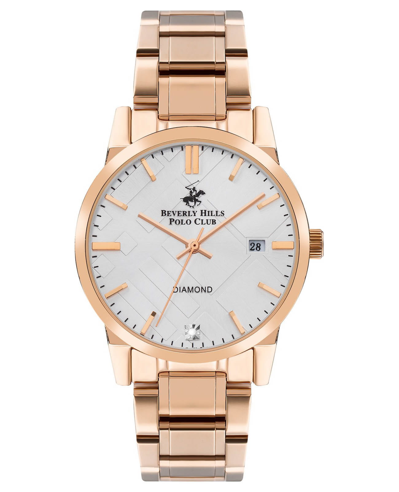 Американские женские часы с минеральным стекломМинеральное стеклоМинеральное стекло представляет собой искусственно выращенный минерал кварца. Такое стекло отличается особой устойчивостью к повреждениям и царапинам. Уступает по некоторым качествам сапфировому стеклу. Beverly Hills Polo Club BP3398C.430, кварцевый механизм с высокой точностью. Корпус и браслет часов изготовлены из нержавеющей стали с IP-покрытиемIP-покрытиеМетод ионного напыления. Демонстрирует повышенную устойчивость к истиранию, окислению и химическим веществам. Под воздействием высокого давления и температуры около 1500°C молекулы металла надёжно соединяются с частицами корпуса часов.. Циферблат украшен бриллиантом. Окошко даты в положении 3 часов. Класс водозащиты: 50 метров, позволит защитить корпус от случайных брызг или капель дождя. Стальной браслет на раскладной застёжкеРаскладная застёжкаТакой тип застёжки используется только на браслетах из металла. Она никогда не раскрывается полностью, происходит разделение на 2 и более частей. Раскладывающая застёжка снизит вероятность потери часов к минимуму..