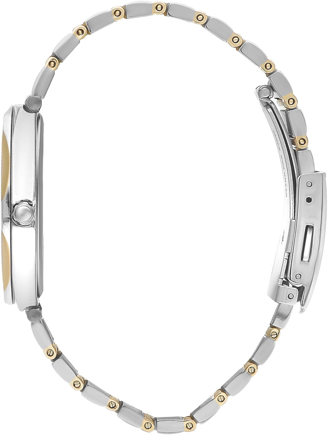 Американские женские часы с минеральным стекломМинеральное стеклоМинеральное стекло представляет собой искусственно выращенный минерал кварца. Такое стекло отличается особой устойчивостью к повреждениям и царапинам. Уступает по некоторым качествам сапфировому стеклу. Beverly Hills Polo Club BP3399C.230, кварцевый механизм с высокой точностью. Корпус и браслет часов изготовлены из нержавеющей стали с частичным IP-покрытиемIP-покрытиеМетод ионного напыления. Демонстрирует повышенную устойчивость к истиранию, окислению и химическим веществам. Под воздействием высокого давления и температуры около 1500°C молекулы металла надёжно соединяются с частицами корпуса часов.. БезельБезельВнешний ободок, закрепляющий стекло. В спортивных часах так называется поворотное кольцо с делениями на циферблате, выполняет роль таймера – замеряет отрезки времени на шкале. Неподвижный безель – элемент декора. Однонаправленно вращающийся безель на дайверских часах позволяет фиксировать моменты погружения и выныривания на поверхность. и циферблат украшены синтетическими бриллиантами. Стрелки с люминесцентным покрытиемЛюминесцентное покрытиеПозволяет считывать показания времени в темноте. Производители наносят на стрелки, часовые индексы, безель или поверхность циферблата светонакопительный состав, дающий холодное свечение.. Класс водозащиты: 50 метров, позволит защитить корпус от случайных брызг или капель дождя. Стальной браслет на раскладной застёжкеРаскладная застёжкаТакой тип застёжки используется только на браслетах из металла. Она никогда не раскрывается полностью, происходит разделение на 2 и более частей. Раскладывающая застёжка снизит вероятность потери часов к минимуму..