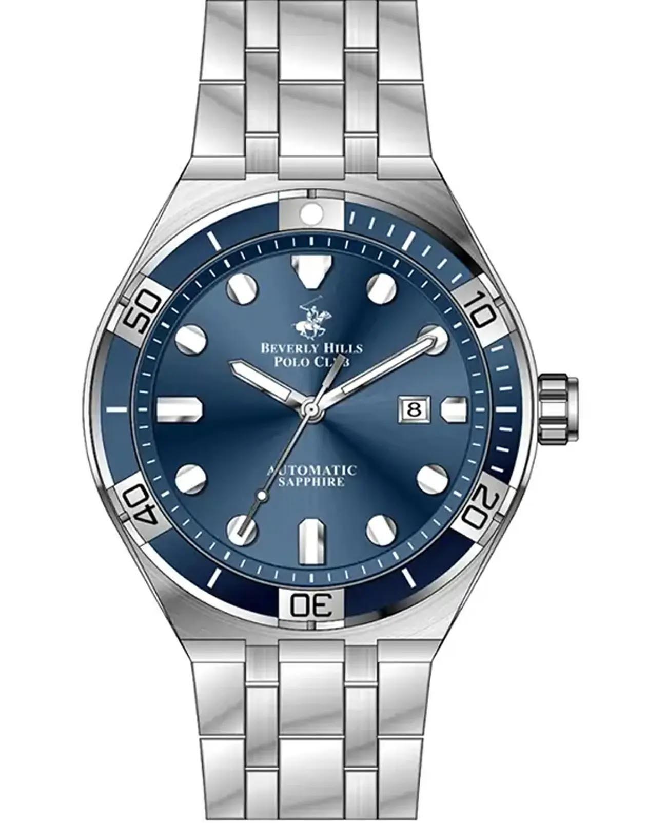 Американские мужские часы с сапфировым стекломСапфировое стеклоПрочный и надёжный материал из кристалла сапфира синтетического происхождения, характеризующийся особой твёрдостью и устойчивостью к царапинам и повреждениям. Beverly Hills Polo Club BP3575X.390, механический механизм (автоматический калибр) с высокой точностью. Сапфировое стеклоСапфировое стеклоПрочный и надёжный материал из кристалла сапфира синтетического происхождения, характеризующийся особой твёрдостью и устойчивостью к царапинам и повреждениям. устойчивое к появлению царапин, обладающее высокой прозрачностью. Класс водозащиты: 100 метров, позволит плавать, нырять и заниматься другими водными видами спорта. Корпус часов изготовлен из стали. Стальной браслет на раскладной застёжкеРаскладная застёжкаТакой тип застёжки используется только на браслетах из металла. Она никогда не раскрывается полностью, происходит разделение на 2 и более частей. Раскладывающая застёжка снизит вероятность потери часов к минимуму.. БезельБезельВнешний ободок, закрепляющий стекло. В спортивных часах так называется поворотное кольцо с делениями на циферблате, выполняет роль таймера – замеряет отрезки времени на шкале. Неподвижный безель – элемент декора. Однонаправленно вращающийся безель на дайверских часах позволяет фиксировать моменты погружения и выныривания на поверхность. с IP-покрытиемIP-покрытиеМетод ионного напыления. Демонстрирует повышенную устойчивость к истиранию, окислению и химическим веществам. Под воздействием высокого давления и температуры около 1500°C молекулы металла надёжно соединяются с частицами корпуса часов..Стрелки и метки с люминесцентным покрытиемЛюминесцентное покрытиеПозволяет считывать показания времени в темноте. Производители наносят на стрелки, часовые индексы, безель или поверхность циферблата светонакопительный состав, дающий холодное свечение..