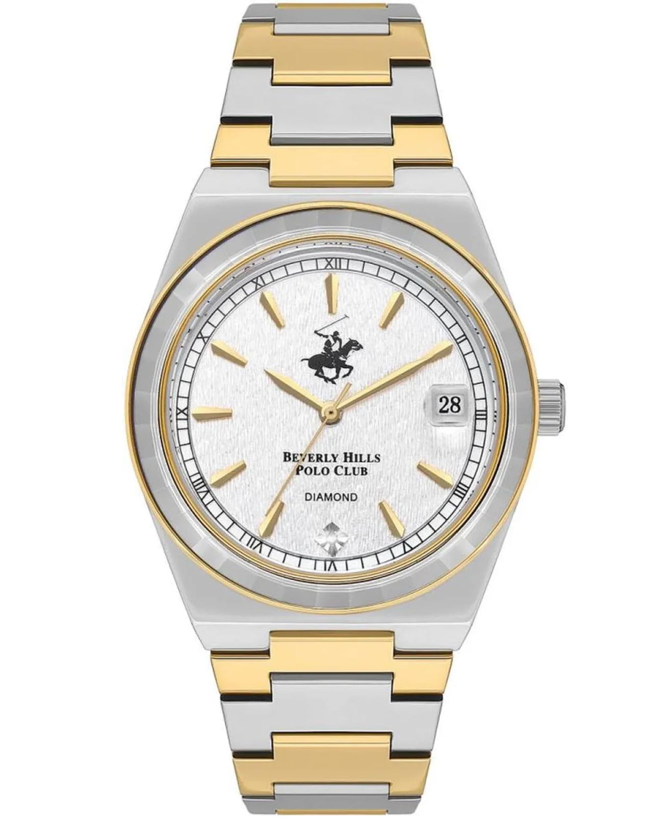 Женские наручные часы Beverly Hills Polo Club BP3562C.230 с надёжным кварцевым механизмом. Корпус и браслет часов изговлен из нержавеющей стали. Минеральное стеклоМинеральное стеклоМинеральное стекло представляет собой искусственно выращенный минерал кварца. Такое стекло отличается особой устойчивостью к повреждениям и царапинам. Уступает по некоторым качествам сапфировому стеклу. устойчивое к мелким механическим повреждениям. Стальной браслет с частичным IP-покрытиемIP-покрытиеМетод ионного напыления. Демонстрирует повышенную устойчивость к истиранию, окислению и химическим веществам. Под воздействием высокого давления и температуры около 1500°C молекулы металла надёжно соединяются с частицами корпуса часов. на застёжке-бабочке. Циферблат украшен синтетическим бриллиантом. Класс водозащиты: 30 метров, позволит защитить корпус от случайных брызг или капель дождя. Окошко даты находится в положении 3 часа.