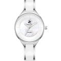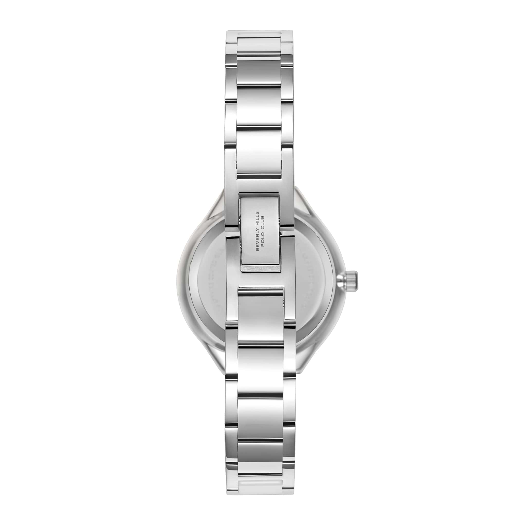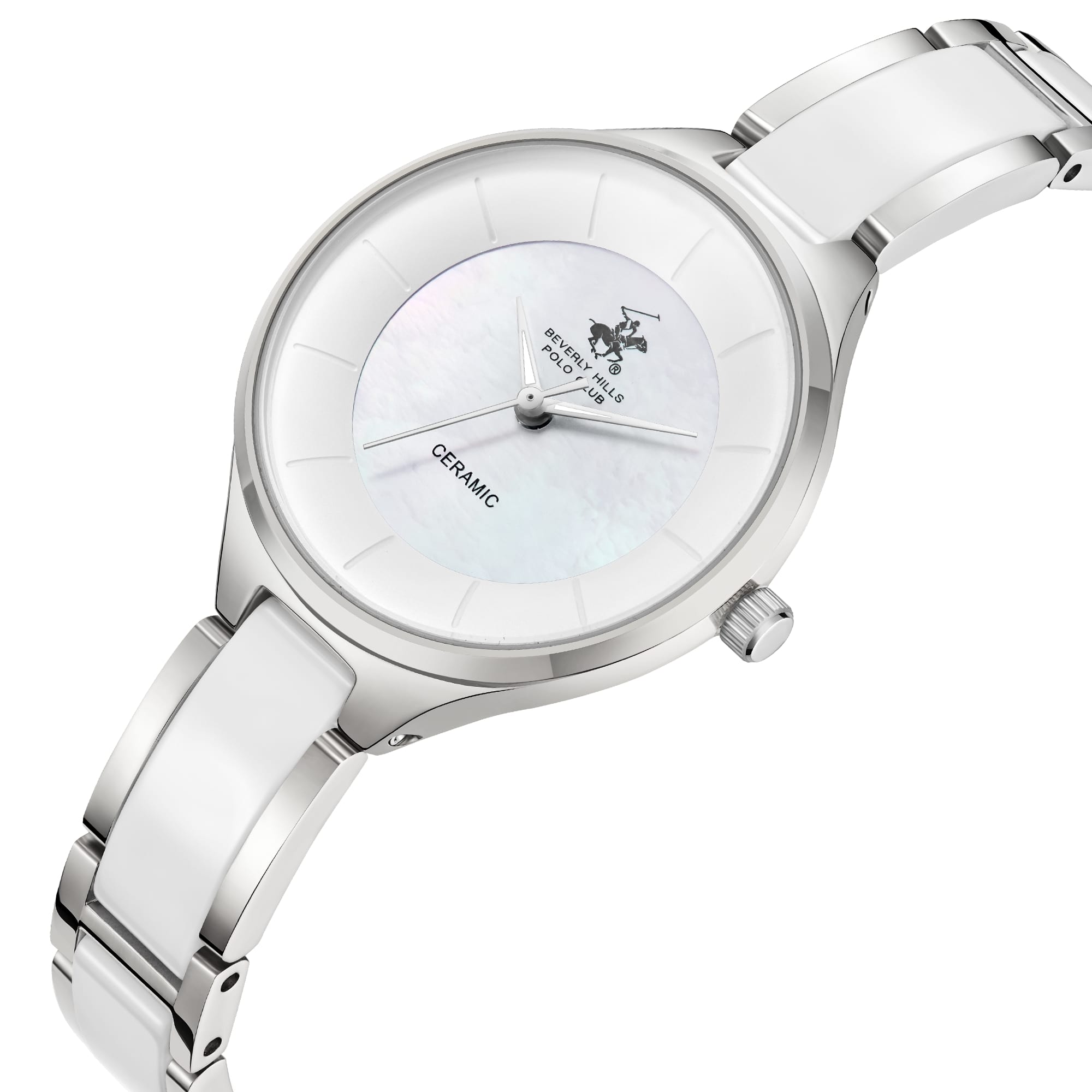 Beverly Hills Polo Club BP3706C.320 – элегантные женские часы, сочетающие современный дизайн и высокое качество. Корпус диаметром 30 мм выполнен из суперметалла, что придаёт модели изысканный и стильный вид. Циферблат защищён минеральным стекломМинеральное стеклоМинеральное стекло представляет собой искусственно выращенный минерал кварца. Такое стекло отличается особой устойчивостью к повреждениям и царапинам. Уступает по некоторым качествам сапфировому стеклу., обеспечивающим устойчивость к царапинам. Часы оснащены точным кварцевым механизмом, гарантирующим надёжное и стабильное отображение времени. Браслет из нержавеющей стали и керамическими вставками оснащён ювелирной застежкой, обеспечивающей комфортное ношение и надёжную фиксацию на запястье. Водозащита до 50 метров (5 ATM) позволяет использовать часы в повседневной жизни, включая мытьё рук и попадание под дождь.