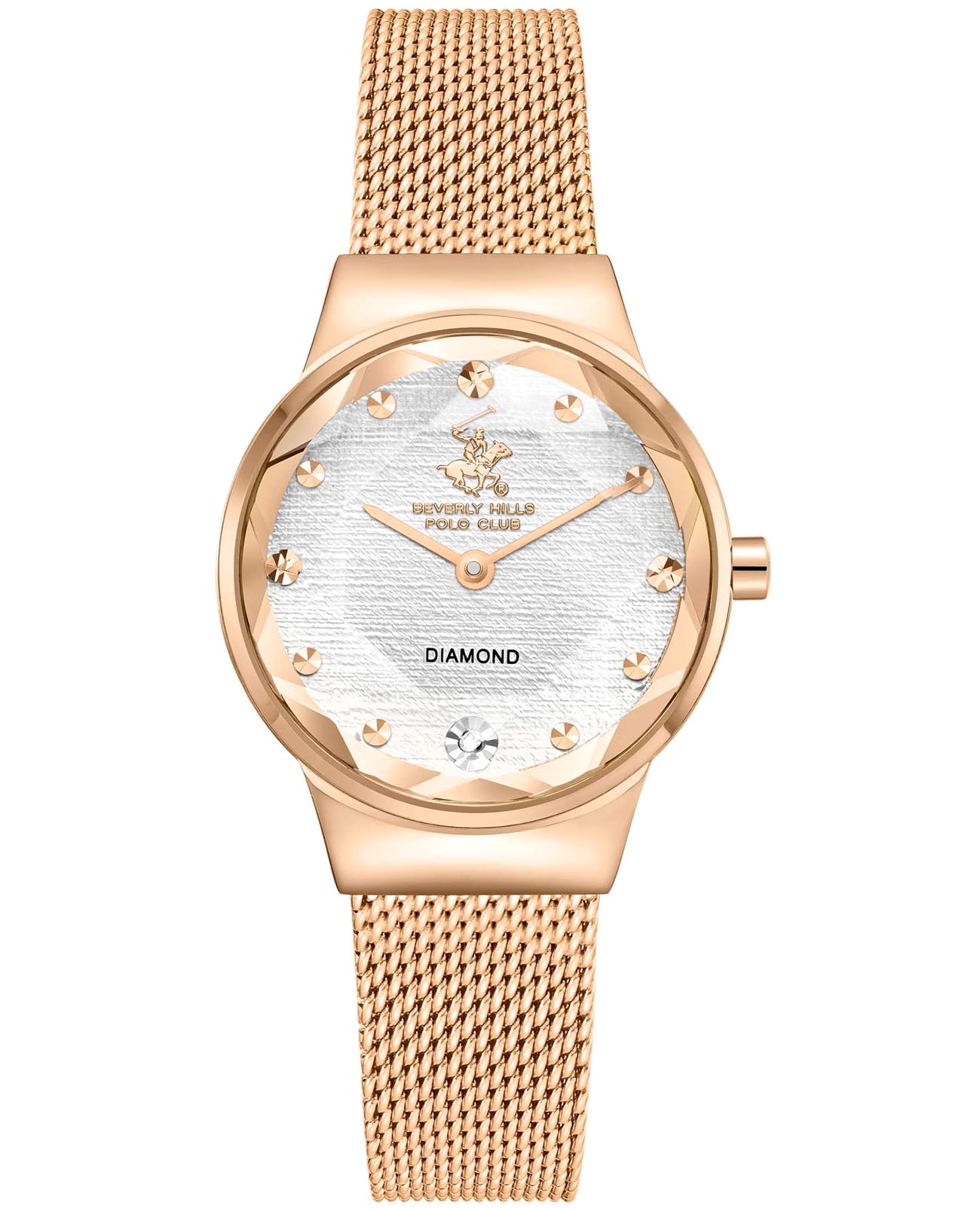Американские женские часы Beverly Hills Polo Club BP3768X.430 - это стильный женский аксессуар, который сочетает элегантный дизайн и практичность. Корпус выполнен из нержавеющей стали с IP-покрытиемIP-покрытиеМетод ионного напыления. Демонстрирует повышенную устойчивость к истиранию, окислению и химическим веществам. Под воздействием высокого давления и температуры около 1500°C молекулы металла надёжно соединяются с частицами корпуса часов. цвета розового золота, диаметром 28 мм, что обеспечивает долговечность и утончённый внешний вид. Надежное минеральное стеклоМинеральное стеклоМинеральное стекло представляет собой искусственно выращенный минерал кварца. Такое стекло отличается особой устойчивостью к повреждениям и царапинам. Уступает по некоторым качествам сапфировому стеклу. с сапфировым покрытием защищает циферблат от царапин и обеспечивает долговечность. Метки в виде точек инкрустированы синтетическими бриллиантами. Модель оснащена кварцевым механизмом, обеспечивающим высокую точность хода. Стальной браслет миланского плетения на раскладной застёжкеРаскладная застёжкаТакой тип застёжки используется только на браслетах из металла. Она никогда не раскрывается полностью, происходит разделение на 2 и более частей. Раскладывающая застёжка снизит вероятность потери часов к минимуму. обеспечивает комфортное ношение. Водозащита 30 метров позволит защитить корпус от случайных брызг или капель дождя. Эта модель – отличный выбор для тех, кто ищет сочетание стиля, качества и функциональности. Часы станут не только полезным аксессуаром, но и выразительным элементом вашего имиджа.