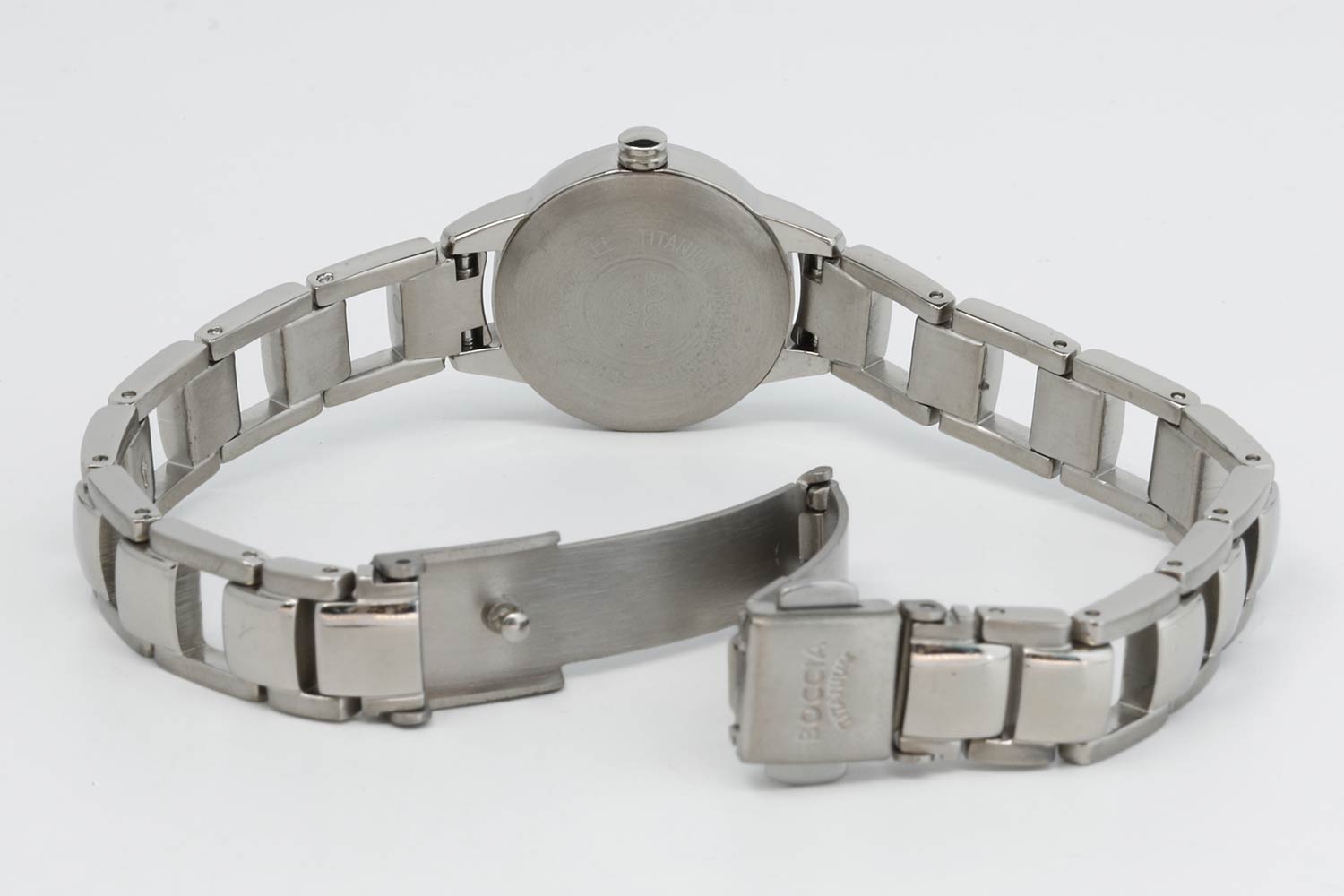Женские наручные часы Boccia Titanium 3277-01 с надёжным кварцевым механизмом. Корпус и браслет часов изготовлены из титана. Минеральное стеклоМинеральное стеклоМинеральное стекло представляет собой искусственно выращенный минерал кварца. Такое стекло отличается особой устойчивостью к повреждениям и царапинам. Уступает по некоторым качествам сапфировому стеклу. устойчивое к мелким механическим повреждениям. Класс водозащиты: 30 метров, позволит защитить корпус от случайных брызг или капель дождя. Стрелки с люминесцентным покрытиемЛюминесцентное покрытиеПозволяет считывать показания времени в темноте. Производители наносят на стрелки, часовые индексы, безель или поверхность циферблата светонакопительный состав, дающий холодное свечение.. Титановый браслет на раскладной застёжкеРаскладная застёжкаТакой тип застёжки используется только на браслетах из металла. Она никогда не раскрывается полностью, происходит разделение на 2 и более частей. Раскладывающая застёжка снизит вероятность потери часов к минимуму..
