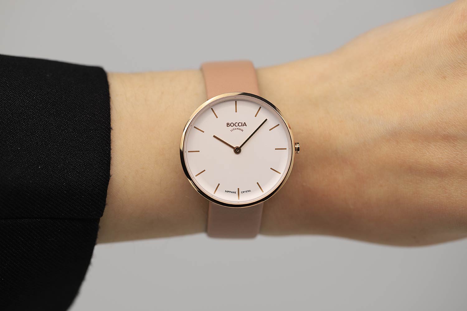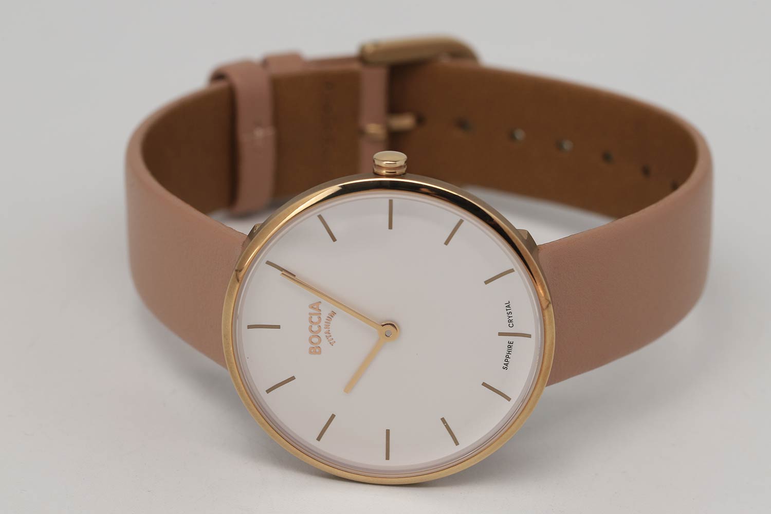 Женские наручные часы Boccia Titanium 3327-05 с надёжным кварцевым механизмом. Корпус часов изготовлен из титана с PVD-покрытиемPVDУльтратонкое покрытие наносится в технике вакуумного напыления, сочетает в себе нитрид титана особой прочности со слоем золота или оксида хрома. Несёт в себе декоративную или защитную функцию.. Сапфировое стеклоСапфировое стеклоПрочный и надёжный материал из кристалла сапфира синтетического происхождения, характеризующийся особой твёрдостью и устойчивостью к царапинам и повреждениям. устойчивое к мелким механическим повреждениям. Класс водозащиты: 30 метров, позволит защитить корпус от случайных брызг или капель дождя. Кожаный ремешок на стандартной застёжке.