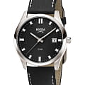 Часы Boccia 3669-02 представляют собой идеальное сочетание стиля и функциональности для современного мужчины. Оснащенные надежным кварцевым механизмом Miyota GR12, они обеспечивают высокую точность хода. На черном циферблате с метками времени расположены центральные часовая, минутная и секундная стрелки, а также апертура даты в положении 3 часов, что делает использование этих часов еще более удобным. Корпус часов имеет круглый дизайн и выполнен из суперлегкого титана, что обеспечивает комфорт и легкость при ношении. Диаметр корпуса составляет 39 мм, что делает часы универсальными и подходящими для любого запястья. Стрелки часов покрыты люминесцентным покрытиемЛюминесцентное покрытиеПозволяет считывать показания времени в темноте. Производители наносят на стрелки, часовые индексы, безель или поверхность циферблата светонакопительный состав, дающий холодное свечение., которое мягко светится в темноте, освещая путь даже в самых загадочных сумерках. Черный кожаный ремешок с классической застежкой добавляет элегантности и обеспечивает надежную фиксацию на руке. Часы защищены прочным минеральным стекломМинеральное стеклоМинеральное стекло представляет собой искусственно выращенный минерал кварца. Такое стекло отличается особой устойчивостью к повреждениям и царапинам. Уступает по некоторым качествам сапфировому стеклу., устойчивым к мелким механическим повреждениям, что сохраняет их безупречный вид при повседневном использовании. Водостойкость модели составляет WR 100, что позволяет использовать их при плавании без погружения, не беспокоясь о сохранности механизма.