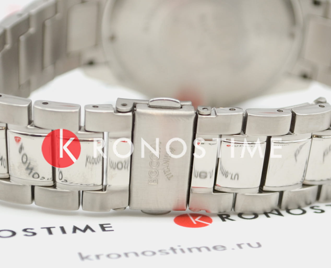 Мужские немецкие титановые часы-хронографХронографФункция позволяет измерять отрезки времени с особой точностью: часы, минуты, секунды. Верным признаком хронографа является наличие на циферблате 3 дополнительных окошек-счётчиков. с секундомеромСекундомерСекундоме́р — прибор, способный измерять интервалы времени с точностью до долей секунды. Boccia Titanium Circle-Oval 3751-01, кварцевый механизм с высокой точностью. Минеральное стеклоМинеральное стеклоМинеральное стекло представляет собой искусственно выращенный минерал кварца. Такое стекло отличается особой устойчивостью к повреждениям и царапинам. Уступает по некоторым качествам сапфировому стеклу. устойчивое к появлению царапин, обладающее высокой прозрачностью. Корпус изготовлен из титана. БезельБезельВнешний ободок, закрепляющий стекло. В спортивных часах так называется поворотное кольцо с делениями на циферблате, выполняет роль таймера – замеряет отрезки времени на шкале. Неподвижный безель – элемент декора. Однонаправленно вращающийся безель на дайверских часах позволяет фиксировать моменты погружения и выныривания на поверхность. из титана со шкалой тахиметрТахиметрРазмеченная шкала, располагается на ободке или безеле часов. Тахиметр позволяет рассчитать скорость на определённом участке пути, расстояние измеряется в километрах или милях.. На цифрблате расположены три дополнительных индикатора и окошко даты. Стрелки с люминесцентным покрытиемЛюминесцентное покрытиеПозволяет считывать показания времени в темноте. Производители наносят на стрелки, часовые индексы, безель или поверхность циферблата светонакопительный состав, дающий холодное свечение.. Класс водозащиты: 100 метров, позволит плавать, нырять и заниматься другими водными видами спорта. Браслет из титана на раскладной застёжкеРаскладная застёжкаТакой тип застёжки используется только на браслетах из металла. Она никогда не раскрывается полностью, происходит разделение на 2 и более частей. Раскладывающая застёжка снизит вероятность потери часов к минимуму..