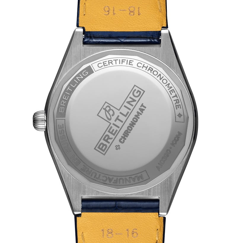 Женские швейцарские часы Breitling Chronomat Automatic 36 South Sea A10380611C1P1, механический механизм (автоматический калибр) Breitling 10, сертифицированный Швейцарским институтом официального тестирования хронометров (COSC). Выпуклое сапфировое стекло устойчивое к появлению царапин, обладающее высокой прозрачностью и антибликовым покрытием с обеих сторон. Класс водозащиты: 100 метров, позволит плавать, нырять и заниматься другими водными видами спорта. Корпус часов выполнен из нержавеющей стали, кожаный синий ремешок.