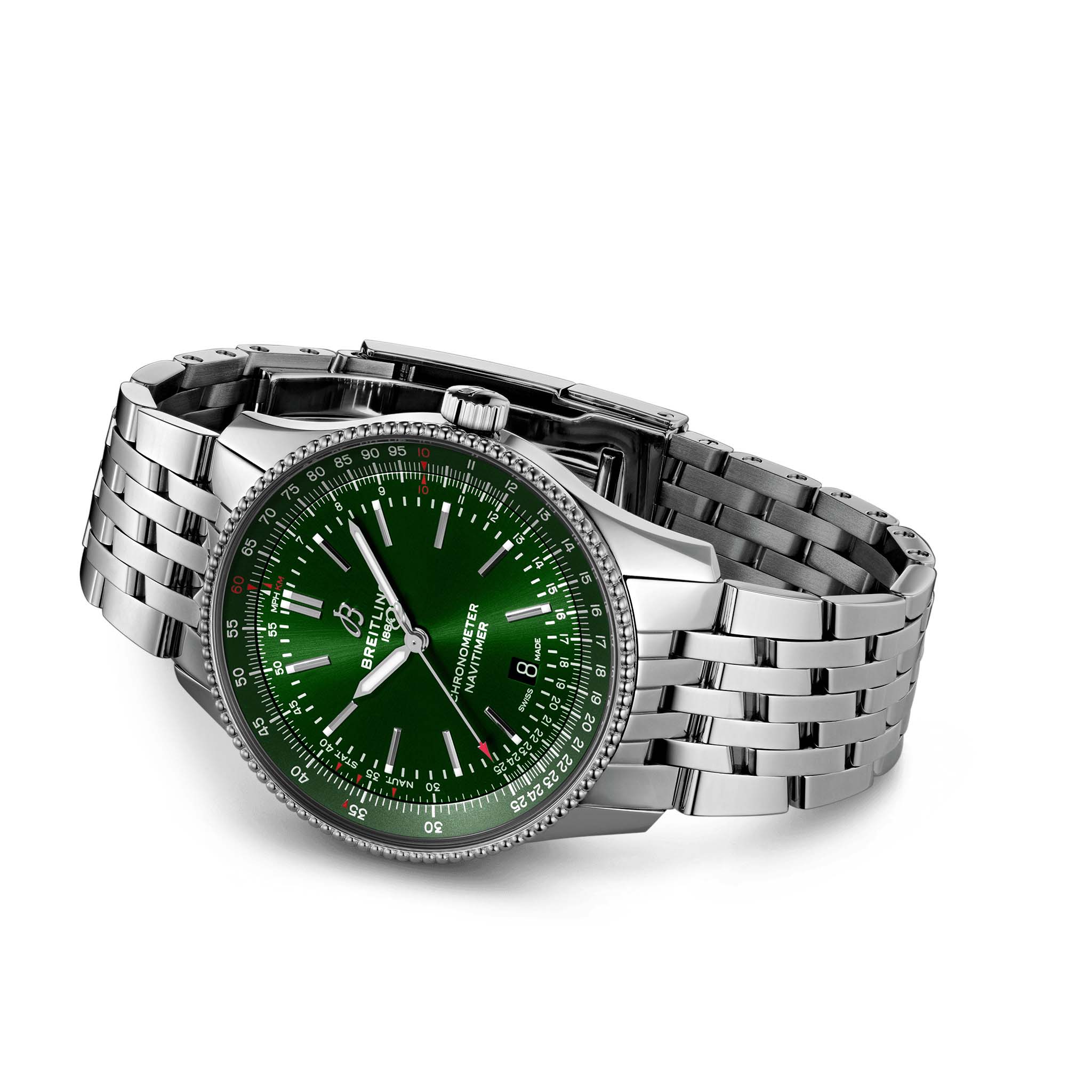Мужские швейцарские часы-хронометр Breitling Navitimer Automatic 41 A17326361L1A1, механический механизм (автоматический калибр) с высокой точностью. Сапфировое стеклоСапфировое стеклоПрочный и надёжный материал из кристалла сапфира синтетического происхождения, характеризующийся особой твёрдостью и устойчивостью к царапинам и повреждениям. устойчивое к появлению царапин, обладающее высокой прозрачностью. Класс водозащиты: 30 метров, позволит защитить корпус от случайных брызг или капель дождя. Корпус часов изготовлен из стали. Стальной браслет с застёжкой-бабочкой с кнопкамиЗастёжка "бабочка"Такой вид застёжки дополняется предохранителями, помогающими избежать случайного раскрытия браслета. Обладают изящным исполнением. . Шкала тахиметраТахиметрРазмеченная шкала, располагается на ободке или безеле часов. Тахиметр позволяет рассчитать скорость на определённом участке пути, расстояние измеряется в километрах или милях. на циферблате. Окошко даты находится в положении 6 часов. Стрелки и метки с люминесцентным покрытиемЛюминесцентное покрытиеПозволяет считывать показания времени в темноте. Производители наносят на стрелки, часовые индексы, безель или поверхность циферблата светонакопительный состав, дающий холодное свечение..