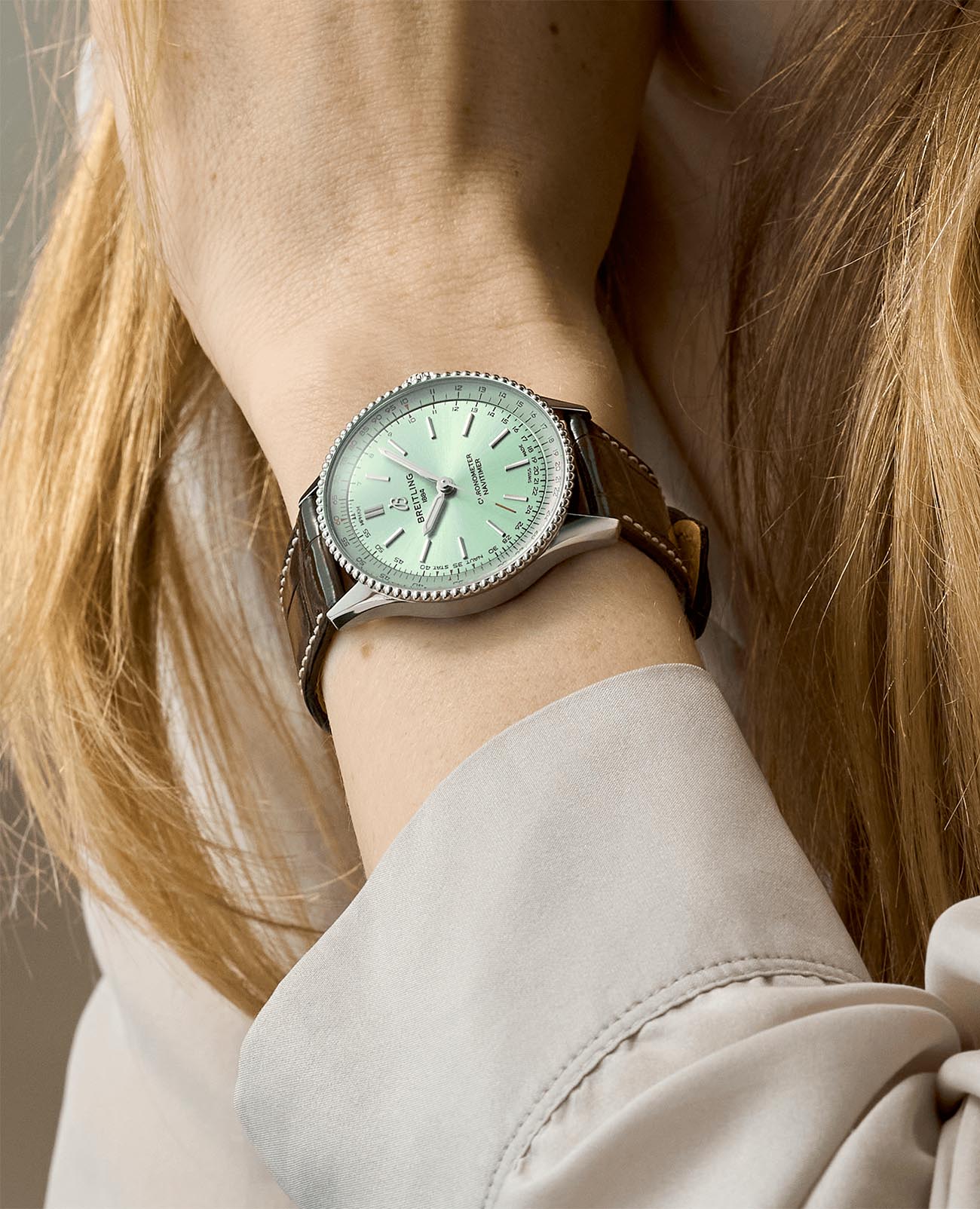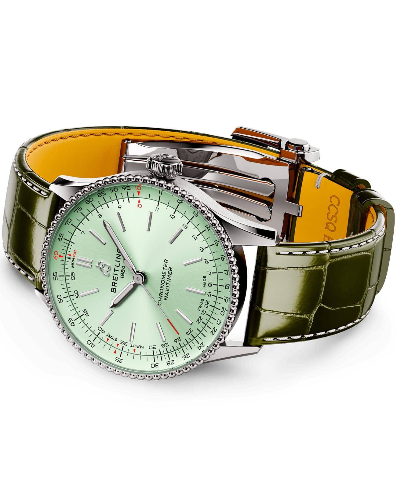Швейцарские унисекс часы-хронометр Breitling Navitimer Automatic 36 A17327361L1P1, механический механизм (автоматический калибр) с высокой точностью. Сапфировое стеклоСапфировое стеклоПрочный и надёжный материал из кристалла сапфира синтетического происхождения, характеризующийся особой твёрдостью и устойчивостью к царапинам и повреждениям. устойчивое к появлению царапин, обладающее высокой прозрачностью. Класс водозащиты: 30 метров, позволит защитить корпус от случайных брызг или капель дождя. Корпус часов изготовлен из нержавеющей стали. Ремешок из кожи аллигатора с раскладной застёжкойРаскладная застёжкаТакой тип застёжки используется только на браслетах из металла. Она никогда не раскрывается полностью, происходит разделение на 2 и более частей. Раскладывающая застёжка снизит вероятность потери часов к минимуму.. Часы оснащены логарифмической линейкой. Стрелки с люминесцентным покрытиемЛюминесцентное покрытиеПозволяет считывать показания времени в темноте. Производители наносят на стрелки, часовые индексы, безель или поверхность циферблата светонакопительный состав, дающий холодное свечение..