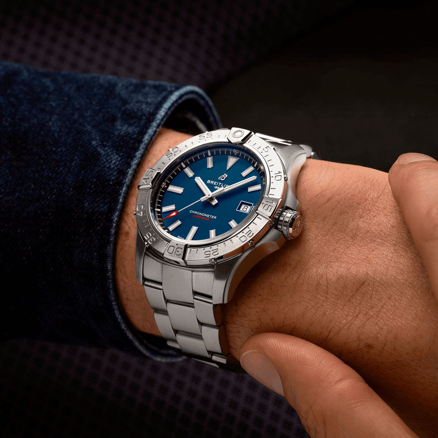 Breitling Avenger Automatic 42 с референсным номером A17328101C1A1 — элегантные мужские часы, сочетающие стиль и функциональность. Корпус диаметром 42 мм выполнен из нержавеющей стали, что обеспечивает прочность и долговечность. Сапфировое стеклоСапфировое стеклоПрочный и надёжный материал из кристалла сапфира синтетического происхождения, характеризующийся особой твёрдостью и устойчивостью к царапинам и повреждениям. с антибликовым покрытием с обеих сторон защищает циферблат и обеспечивает максимальную читаемость. Синий матовый циферблат с накладными часовыми метками и стрелками, покрытыми люминесцентным покрытиемЛюминесцентное покрытиеПозволяет считывать показания времени в темноте. Производители наносят на стрелки, часовые индексы, безель или поверхность циферблата светонакопительный состав, дающий холодное свечение., гарантирует отличную видимость в любых условиях. Окошко даты расположено на отметке «3 часа». Часы оснащены автоматическим калибром Breitling 17, сертифицированным COSCСертификат COSCОфициальный сертификат, подтверждающий то, что часы ходят с особо высокой точностью. Для получения документа часы подвергаются тестовым испытаниям, разработанным швейцарским институтом тестирования хронометров COSC. Допустимая норма для механических часов -4/+6 секунд в день, для кварцевых моделей +/- 0,07 секунд в день.. Механизм имеет частоту 28 800 полуколебаний в час, 25 камней и запас хода до 38 часов. Водозащита до 30 ATM (300 метров) делает их подходящими для плавания и дайвинга. Браслет из нержавеющей стали с раскладной застёжкойРаскладная застёжкаТакой тип застёжки используется только на браслетах из металла. Она никогда не раскрывается полностью, происходит разделение на 2 и более частей. Раскладывающая застёжка снизит вероятность потери часов к минимуму. и предохранителем обеспечивает комфортное ношение и надёжную фиксацию. Breitling Avenger Automatic 42 A17328101C1A1 — выбор для мужчин, которые ценят стиль, функциональность и высокое качество.