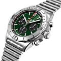 На корпусе диаметром 42 мм выделяется знаменитый безель с четырьмя райдерами, а характерный зеленый цвет циферблата напоминает о многолетнем партнерстве бренда с Bentley.