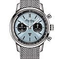 Мужские швейцарские часы-хронографХронографФункция позволяет измерять отрезки времени с особой точностью: часы, минуты, секунды. Верным признаком хронографа является наличие на циферблате 3 дополнительных окошек-счётчиков. с тахиметромТахиметрРазмеченная шкала, располагается на ободке или безеле часов. Тахиметр позволяет рассчитать скорость на определённом участке пути, расстояние измеряется в километрах или милях. Breitling Top Time B01 Triumph AB01764A1C1A1, механический механизм (автоматический калибр) с высокой точностью. Сапфировое стеклоСапфировое стеклоПрочный и надёжный материал из кристалла сапфира синтетического происхождения, характеризующийся особой твёрдостью и устойчивостью к царапинам и повреждениям. устойчивое к появлению царапин, обладающее высокой прозрачностью. Корпус часов изготовлен из нержавеющей стали. Стальной браслет миланского плетения и застёжка «бабочка» с кнопкамиЗастёжка "бабочка"Такой вид застёжки дополняется предохранителями, помогающими избежать случайного раскрытия браслета. Обладают изящным исполнением. . Класс водозащиты: 100 метров, позволит плавать, нырять и заниматься другими водными видами спорта. Стрелки и метки с люминесцентным покрытиемЛюминесцентное покрытиеПозволяет считывать показания времени в темноте. Производители наносят на стрелки, часовые индексы, безель или поверхность циферблата светонакопительный состав, дающий холодное свечение..
