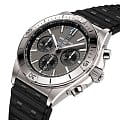 Мужские швейцарские часы-хронограф с секундомером Breitling Chronomat B01 42 EB0134101M1S1, механический механизм (автоматический калибр) с высокой точностью. Сапфировое стеклоСапфировое стеклоПрочный и надёжный материал из кристалла сапфира синтетического происхождения, характеризующийся особой твёрдостью и устойчивостью к царапинам и повреждениям. устойчивое к появлению царапин, обладающее высокой прозрачностью. Класс водозащиты: 200 метров, позволит плавать, нырять и заниматься другими водными видами спорта. Корпус часов изготовлен из нержавеющей стали. Браслет из каучука на раскладной застёжкеРаскладная застёжкаТакой тип застёжки используется только на браслетах из металла. Она никогда не раскрывается полностью, происходит разделение на 2 и более частей. Раскладывающая застёжка снизит вероятность потери часов к минимуму.. Стрелки и метки с люминесцентным покрытиемЛюминесцентное покрытиеПозволяет считывать показания времени в темноте. Производители наносят на стрелки, часовые индексы, безель или поверхность циферблата светонакопительный состав, дающий холодное свечение.. Шкала тахиметра на циферблате. Окошко даты находится в положении 6 часов.