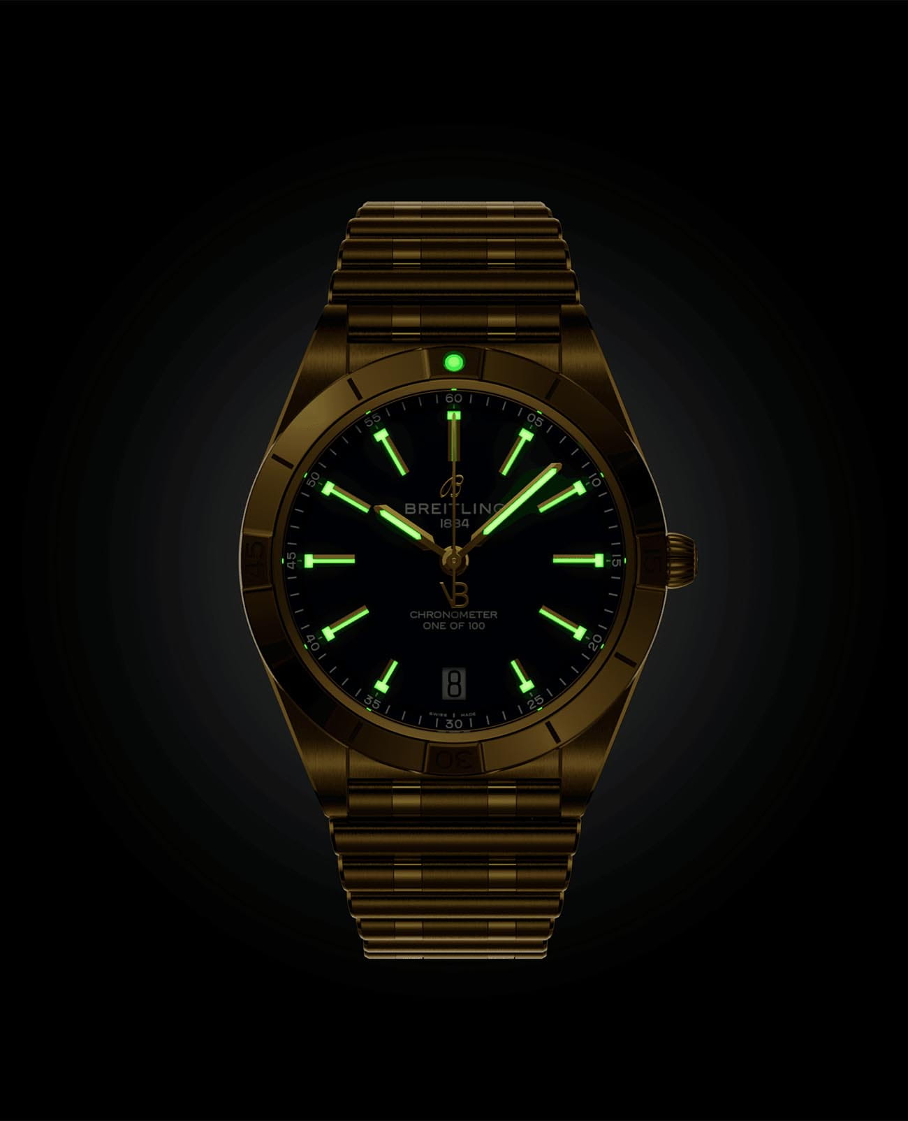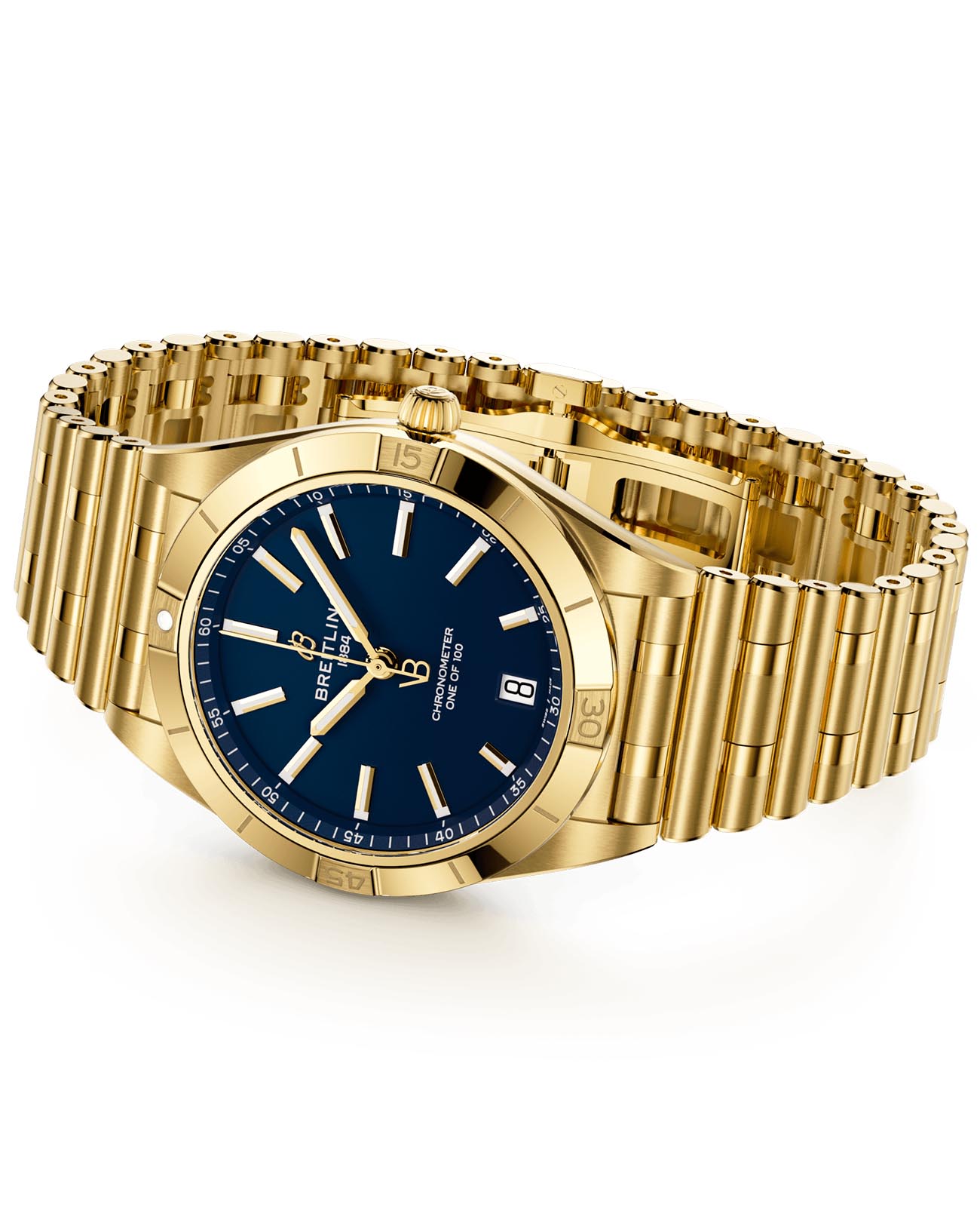 Женские швейцарские часы Breitling Chronomat Automatic 36 Victoria Beckham K103801A1C1K1 с надёжным автоматическим механизмом, выпущенные лимитированной серией всего из 1500 экземпляров в сотрудничестве с модным домом Victoria Beckham. Сапфировое стеклоСапфировое стеклоПрочный и надёжный материал из кристалла сапфира синтетического происхождения, характеризующийся особой твёрдостью и устойчивостью к царапинам и повреждениям. устойчивое к мелким механическим повреждениям. Корпус и браслет часов изготовлены из желтого 18-каратного золота18-каратное золотоОбозначение по каратной системе пробирования, оно показывает, сколько драгоценного металла содержится в изделии. 18 карат - в составе 75% чистого золота, соответствует 750 пробе.