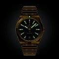 . Браслет на застёжке-бабочке с кнопкамиЗастёжка "бабочка"Такой вид застёжки дополняется предохранителями, помогающими избежать случайного раскрытия браслета. Обладают изящным исполнением. . Стрелки и метки с люминесцентным покрытиемЛюминесцентное покрытиеПозволяет считывать показания времени в темноте. Производители наносят на стрелки, часовые индексы, безель или поверхность циферблата светонакопительный состав, дающий холодное свечение.. Класс водозащиты: 100 метров, позволит плавать, нырять и заниматься другими водными видами спорта. Окошко даты находится в положении 6 часов.