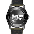 Модель Aviator 8 Automatic 41 Black Steel Curtiss Warhawk оснащена циферблатом и армейским ремешком цвета хаки. Часовая и минутная стрелки, а также выделяющиеся на циферблате арабские цифры с покрытием Super-LumiNova® позволяют считывать время даже в условиях слабой освещенности.