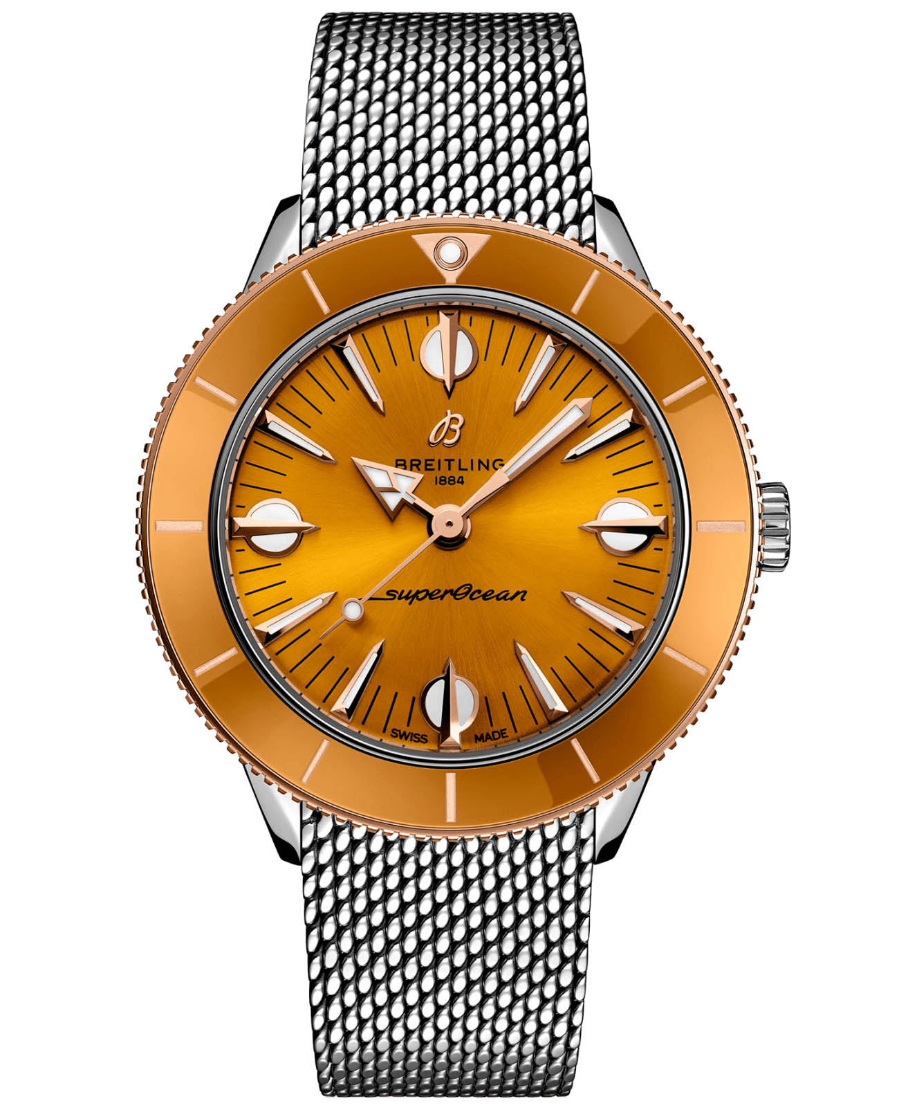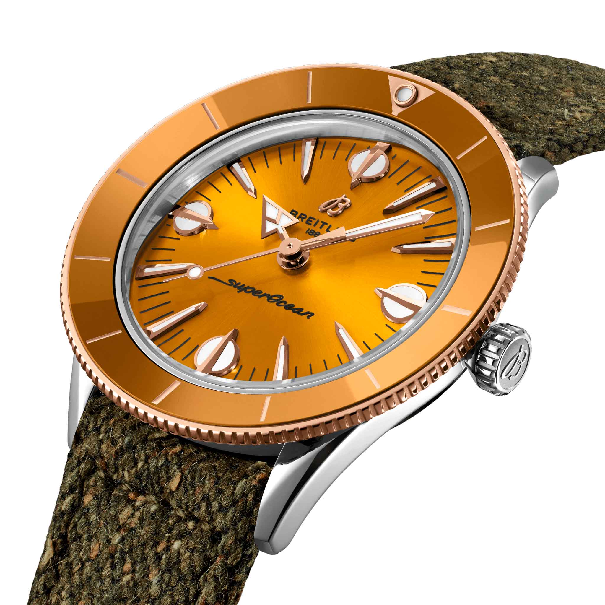 Часы Breitling SuperOcean, созданные в 1950-х годах для дайвинга, были разработаны таким образом, чтобы их обладатели могли стильно путешествовать от моря к берегу. Новая коллекция Superocean Heritage '57 Highlands приглашает поклонников Breitling отправиться в новое путешествие по побережью: исследовать скалистые берега и туманные вершины Шотландского нагорья. Циферблат часов диаметром 38 мм выполнен в ярких естественных тонах - бежевом, зеленом, горчичном и синем. Мужские швейцарские часы Breitling Superocean Heritage '57 Highlands U10340281I1A1, автоматический механизм с высокой точностью. Сапфировое стеклоСапфировое стеклоПрочный и надёжный материал из кристалла сапфира синтетического происхождения, характеризующийся особой твёрдостью и устойчивостью к царапинам и повреждениям. устойчивое к появлению царапин, обладающее высокой прозрачностью. Класс водозащиты: 100 метров, позволит плавать, нырять и заниматься другими водными видами спорта. Корпус часов изготовлен из нержавеющей стали с 18-каратным золотом18-каратное золотоОбозначение по каратной системе пробирования, оно показывает, сколько драгоценного металла содержится в изделии. 18 карат - в составе 75% чистого золота, соответствует 750 пробе.