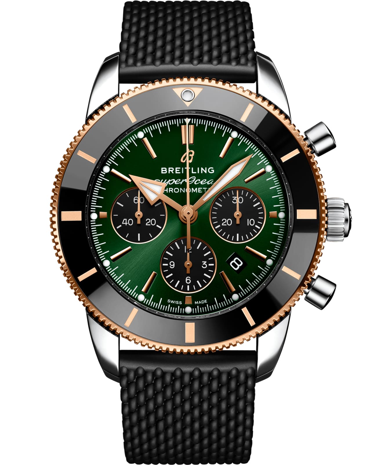 Superocean Heritage B01 Chronograph 44 выпущены лимитированной серией из 500 экземпляров. Все часы имеют циферблат зеленого цвета, при этом корпус может быть изготовлен из нержавеющей стали или 18-каратного красного золота.