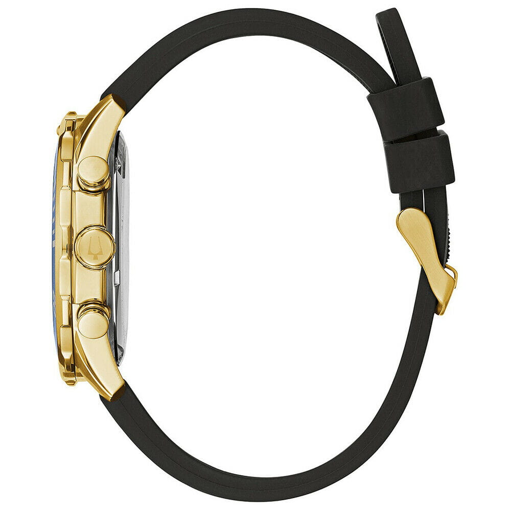 Мужские кварцевые часы-хронографХронографФункция позволяет измерять отрезки времени с особой точностью: часы, минуты, секунды. Верным признаком хронографа является наличие на циферблате 3 дополнительных окошек-счётчиков. с секундомеромСекундомерСекундоме́р — прибор, способный измерять интервалы времени с точностью до долей секунды. Super Sports 98A244 – отражающий идеальное сочетание современного дизайна, надёжности и функциональности. Элегантный облик станет превосходным завершением образа, наделив его индивидуальным характером. Корпус из нержавеющей стали с PVD-покрытиемPVDУльтратонкое покрытие наносится в технике вакуумного напыления, сочетает в себе нитрид титана особой прочности со слоем золота или оксида хрома. Несёт в себе декоративную или защитную функцию. золотистого цвета, диаметром 44 мм идеально сбалансирован и элегантен. Минеральное стеклоМинеральное стеклоМинеральное стекло представляет собой искусственно выращенный минерал кварца. Такое стекло отличается особой устойчивостью к повреждениям и царапинам. Уступает по некоторым качествам сапфировому стеклу. защищает циферблат от царапин и устойчивое к механическим повреждениям. Силиконовый ремешок на стандартной застежке обеспечивает комфортное ношение. БезельБезельВнешний ободок, закрепляющий стекло. В спортивных часах так называется поворотное кольцо с делениями на циферблате, выполняет роль таймера – замеряет отрезки времени на шкале. Неподвижный безель – элемент декора. Однонаправленно вращающийся безель на дайверских часах позволяет фиксировать моменты погружения и выныривания на поверхность. с PVD-покрытиемPVDУльтратонкое покрытие наносится в технике вакуумного напыления, сочетает в себе нитрид титана особой прочности со слоем золота или оксида хрома. Несёт в себе декоративную или защитную функцию. синего цвета. Стрелки с люминесцентным покрытиемЛюминесцентное покрытиеПозволяет считывать показания времени в темноте. Производители наносят на стрелки, часовые индексы, безель или поверхность циферблата светонакопительный состав, дающий холодное свечение.. 12/24х часовой формат времени. Водозащита до 100 метров позволит плавать, нырять и заниматься другими водными видами спорта. Эта модель – отличный выбор для тех, кто ищет сочетание стиля, качества и функциональности. Часы станут не только полезным аксессуаром, но и выразительным элементом вашего имиджа.