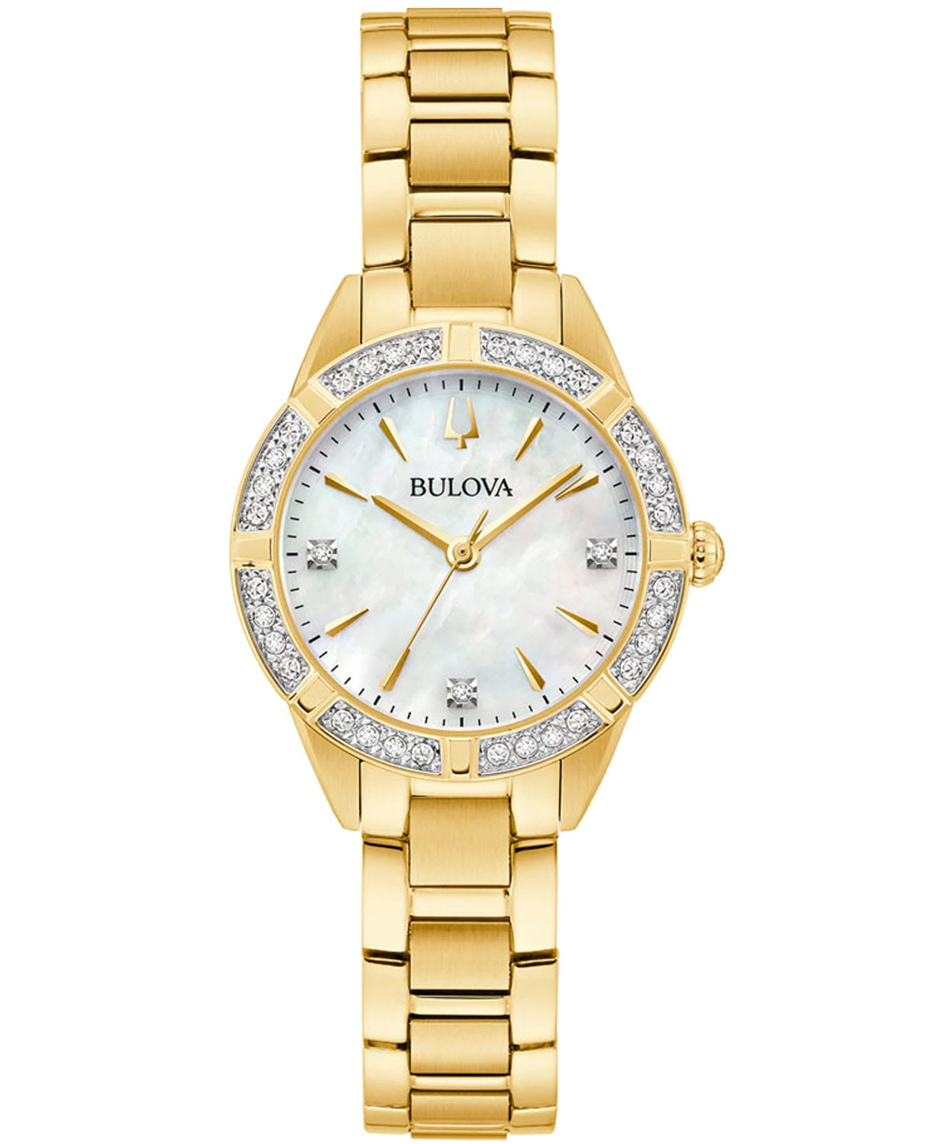 Женские кварцевые часы Bulova Sutton 98R297 – отражающий идеальное сочетание современного дизайна, надёжности и функциональности. Элегантный облик станет превосходным завершением образа, наделив его индивидуальным характером. Корпус из нержавеющей стали с IP-покрытиемIP-покрытиеМетод ионного напыления. Демонстрирует повышенную устойчивость к истиранию, окислению и химическим веществам. Под воздействием высокого давления и температуры около 1500°C молекулы металла надёжно соединяются с частицами корпуса часов. золотистого цвета, диаметром 28 мм идеально сбалансирован и элегантен. Сапфировое стеклоСапфировое стеклоПрочный и надёжный материал из кристалла сапфира синтетического происхождения, характеризующийся особой твёрдостью и устойчивостью к царапинам и повреждениям. защищает циферблат от царапин и устойчивое к механическим повреждениям. БезельБезельВнешний ободок, закрепляющий стекло. В спортивных часах так называется поворотное кольцо с делениями на циферблате, выполняет роль таймера – замеряет отрезки времени на шкале. Неподвижный безель – элемент декора. Однонаправленно вращающийся безель на дайверских часах позволяет фиксировать моменты погружения и выныривания на поверхность. украшен бриллиантами. Стальной браслет с IP-покрытиемIP-покрытиеМетод ионного напыления. Демонстрирует повышенную устойчивость к истиранию, окислению и химическим веществам. Под воздействием высокого давления и температуры около 1500°C молекулы металла надёжно соединяются с частицами корпуса часов. на застёжке-бабочке с кнопкамиЗастёжка "бабочка"Такой вид застёжки дополняется предохранителями, помогающими избежать случайного раскрытия браслета. Обладают изящным исполнением. обеспечивает комфортное ношение. Водозащита 30 метров позволит защитить корпус от случайных брызг или капель дождя. Эта модель – отличный выбор для тех, кто ищет сочетание стиля, качества и функциональности. Часы станут не только полезным аксессуаром, но и выразительным элементом вашего имиджа.