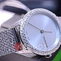 Модный аксессуар не имеет ни одной лишней детали, внешний облик представлен в стиле минимализм. Привлекательно выглядит фактурный безельБезельВнешний ободок, закрепляющий стекло. В спортивных часах так называется поворотное кольцо с делениями на циферблате, выполняет роль таймера – замеряет отрезки времени на шкале. Неподвижный безель – элемент декора. Однонаправленно вращающийся безель на дайверских часах позволяет фиксировать моменты погружения и выныривания на поверхность. в сочетании с браслетом миланского плетения. Швейцарский кварцевый механизм от компании ETA. Сталь 316L. Минеральное стекло. Водостойкость 30 метров.