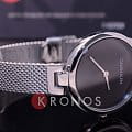 Привлекательно смотрится изящный стальной браслет, выполненный в технике миланского плетения. Чёрный лаконичный циферблат всегда будет актуальным. Швейцарский кварцевый механизм ETA 901.001 гарантирует высокую точность хода. Прочное минеральное стекло препятствует появлению царапин.