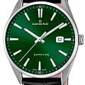 Мужские наручные часы Candino Couple C4622/B сочетают в себе классический дизайн и надежность швейцарского качества. Модель обладает круглым корпусом, изготовленным из нержавеющей стали марки 316L, что обеспечивает высокую устойчивость к коррозии и механическим повреждениям . Корпус оснащен сапфировым стекломСапфировое стеклоПрочный и надёжный материал из кристалла сапфира синтетического происхождения, характеризующийся особой твёрдостью и устойчивостью к царапинам и повреждениям., которое гарантирует защиту от царапин и других внешних воздействий . Часы имеют кожаный ремешок черного цвета, обеспечивающий комфортное ношение в течение дня . Циферблат зеленого цвета дополнен окном даты, расположенном на позиции «3 часа», что добавляет удобства при повседневном использовании . Часы оснащены кварцевым механизмом, который известен своей точностью и минимальной потребностью в обслуживании. Погрешность хода составляет около 20 секунд в месяц, что гарантирует надежность показаний времени . Водонепроницаемость модели достигает 5 атмосфер (50 метров), что позволяет использовать часы в условиях легкого контакта с водой, например, во время мытья рук или дождя, но не рекомендуется для плавания или дайвинга . Модель Candino Classic C4622/A станет идеальным выбором для ценителей классического стиля и практичности в повседневной жизни.