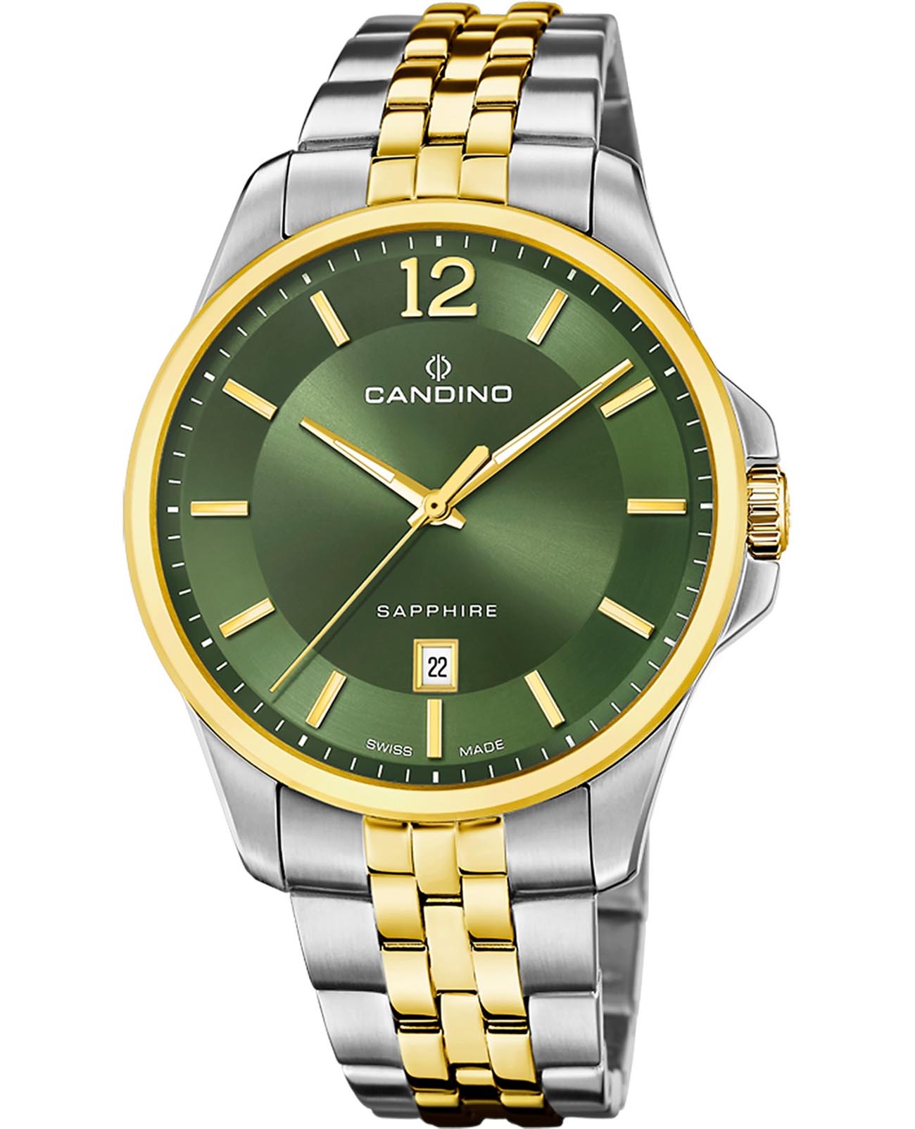 Мужские швейцарские часы с сапфировым стекломСапфировое стеклоПрочный и надёжный материал из кристалла сапфира синтетического происхождения, характеризующийся особой твёрдостью и устойчивостью к царапинам и повреждениям. Candino Gents Classic C4763/3, кварцевый механизм с высокой точностью. Класс водозащиты: 50 метров, позволит защитить корпус от случайных брызг или капель дождя. Корпус и браслет часов изготовлены из нержавеющей стали. Стальной браслет с частичным PVD-покрытиемPVDУльтратонкое покрытие наносится в технике вакуумного напыления, сочетает в себе нитрид титана особой прочности со слоем золота или оксида хрома. Несёт в себе декоративную или защитную функцию. на раскладной застёжкеРаскладная застёжкаТакой тип застёжки используется только на браслетах из металла. Она никогда не раскрывается полностью, происходит разделение на 2 и более частей. Раскладывающая застёжка снизит вероятность потери часов к минимуму.. Стрелки с люминесцентным покрытиемЛюминесцентное покрытиеПозволяет считывать показания времени в темноте. Производители наносят на стрелки, часовые индексы, безель или поверхность циферблата светонакопительный состав, дающий холодное свечение.. Окошко даты находится в положении 6 часов. Класс водозащиты: 50 метров, позволит защитить корпус от случайных брызг или капель дождя.