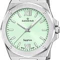 Женские кварцевые часы Candino из коллекции Lady Elegance — это стильный аксессуар, сочетающий швейцарское качество и элегантный дизайн. Корпус диаметром 33,5 мм и толщиной 8 мм выполнен из нержавеющей стали 316L. Циферблат зелёного цвета оформлен индексами и стрелками. Циферблат защищён сапфировым стекломСапфировое стеклоПрочный и надёжный материал из кристалла сапфира синтетического происхождения, характеризующийся особой твёрдостью и устойчивостью к царапинам и повреждениям., устойчивым к царапинам. Механизм — кварцевый, произведённый в Швейцарии. Часы оснащены стальным браслетом с раскладной застёжкойРаскладная застёжкаТакой тип застёжки используется только на браслетах из металла. Она никогда не раскрывается полностью, происходит разделение на 2 и более частей. Раскладывающая застёжка снизит вероятность потери часов к минимуму.. Водонепроницаемость 50 м позволяет использовать часы в повседневных условиях. Гарантия — 2 года. Идеальный выбор для тех, кто ценит точность, красоту и надёжность.
