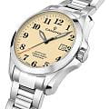 Мужские кварцевые часы Candino C4785/1 — это стильный и надёжный аксессуар швейцарского производства, подчёркивающий индивидуальность и хороший вкус. Корпус круглой формы выполнен из нержавеющей стали и защищён сапфировым стекломСапфировое стеклоПрочный и надёжный материал из кристалла сапфира синтетического происхождения, характеризующийся особой твёрдостью и устойчивостью к царапинам и повреждениям., устойчивым к царапинам. Циферблат бежевого цвета оформлен арабскими цифрами, а стрелки и метки оснащены люминесцентным покрытиемЛюминесцентное покрытиеПозволяет считывать показания времени в темноте. Производители наносят на стрелки, часовые индексы, безель или поверхность циферблата светонакопительный состав, дающий холодное свечение., обеспечивающим хорошую читаемость в темноте. Окошко даты расположено на отметке 3 часа, что делает часы не только элегантными, но и функциональными. Часы оснащены стальным браслетом серебристого цвета с раскладной застёжкойРаскладная застёжкаТакой тип застёжки используется только на браслетах из металла. Она никогда не раскрывается полностью, происходит разделение на 2 и более частей. Раскладывающая застёжка снизит вероятность потери часов к минимуму., который обеспечивает комфорт при ношении. Водонепроницаемость 100 м позволяет использовать часы в повседневных условиях, включая плавание. Модель сочетает в себе классический стиль, швейцарское качество и надёжность, оставаясь универсальным выбором для любого случая. В комплекте предусмотрены два ремешка из кожи и текстиля.